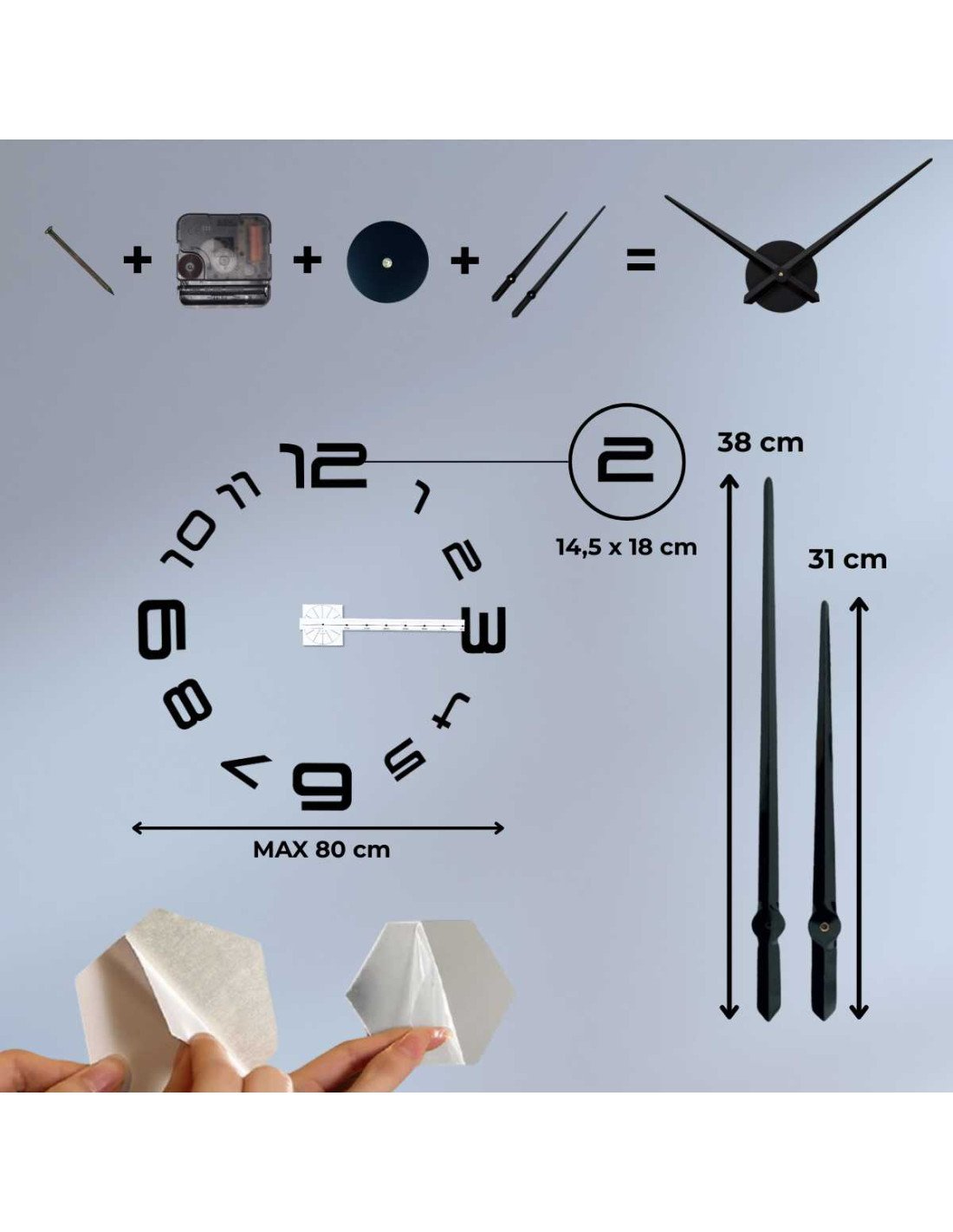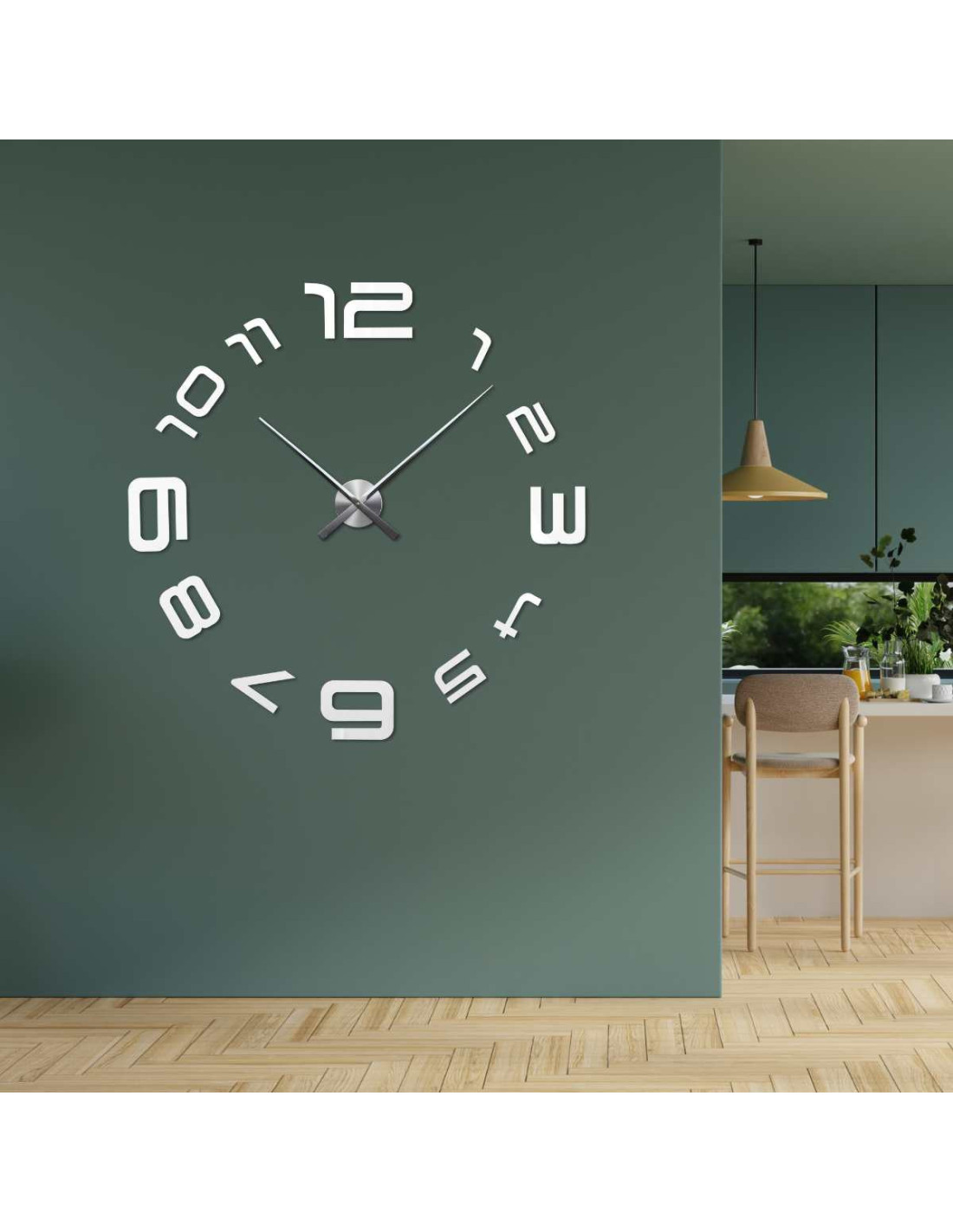 Die selbstklebende Wanduhr mit großen Zahlen und minimalistischen Zeigern besticht durch ihren klaren und modernen Stil.