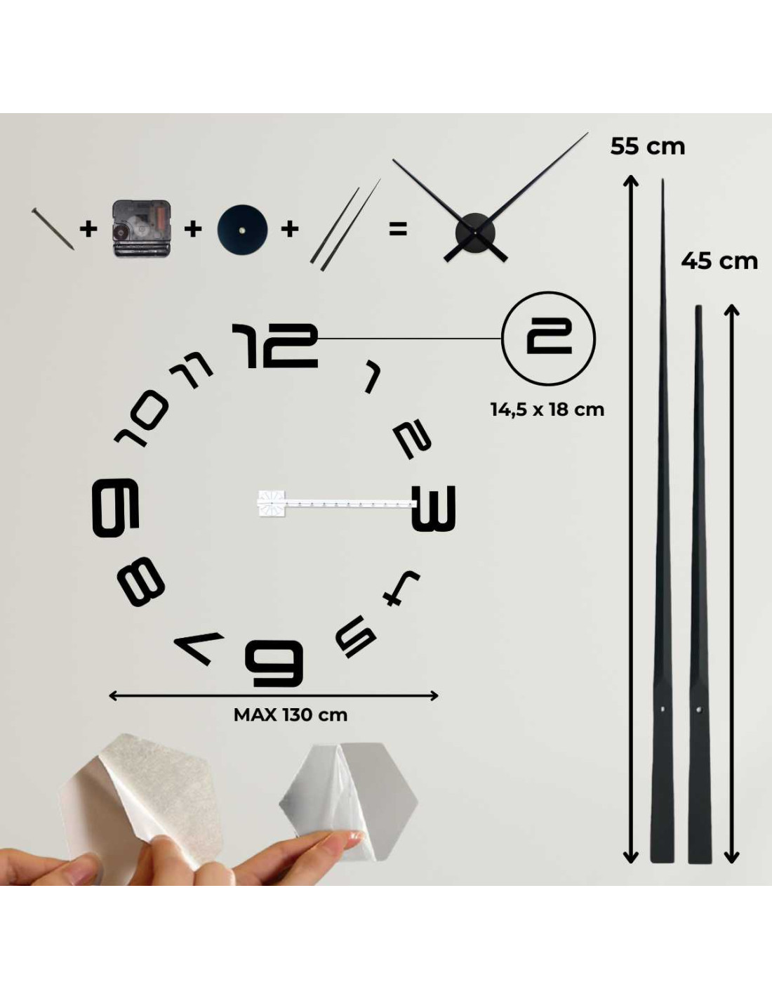Entdecken Sie eine stilvolle Wanduhr mit einem verstellbaren Durchmesser von bis zu 130 cm, die als markantes Element im Wohnzimmer, Schlafzimmer, Büro oder Eingangsbereich auffällt.