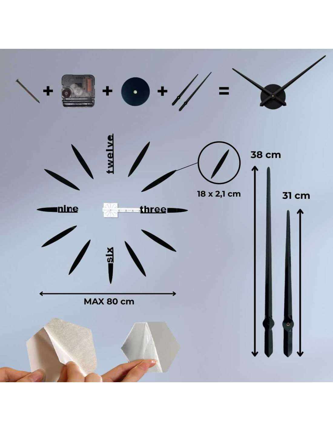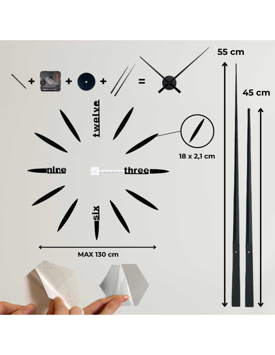 Entdecken Sie eine stilvolle Wanduhr mit einem verstellbaren Durchmesser von bis zu 130 cm, die als markantes Element im Wohnzimmer, Schlafzimmer, Büro oder Eingangsbereich auffällt.