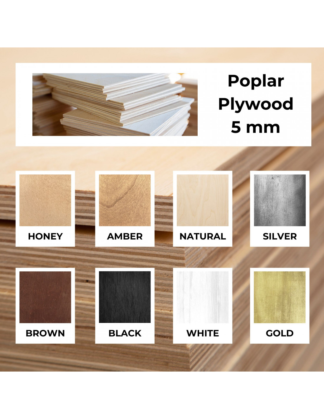 • Sperrholz hat eine Dicke von 5 mm / HDF hat eine Dicke von 3 mm.