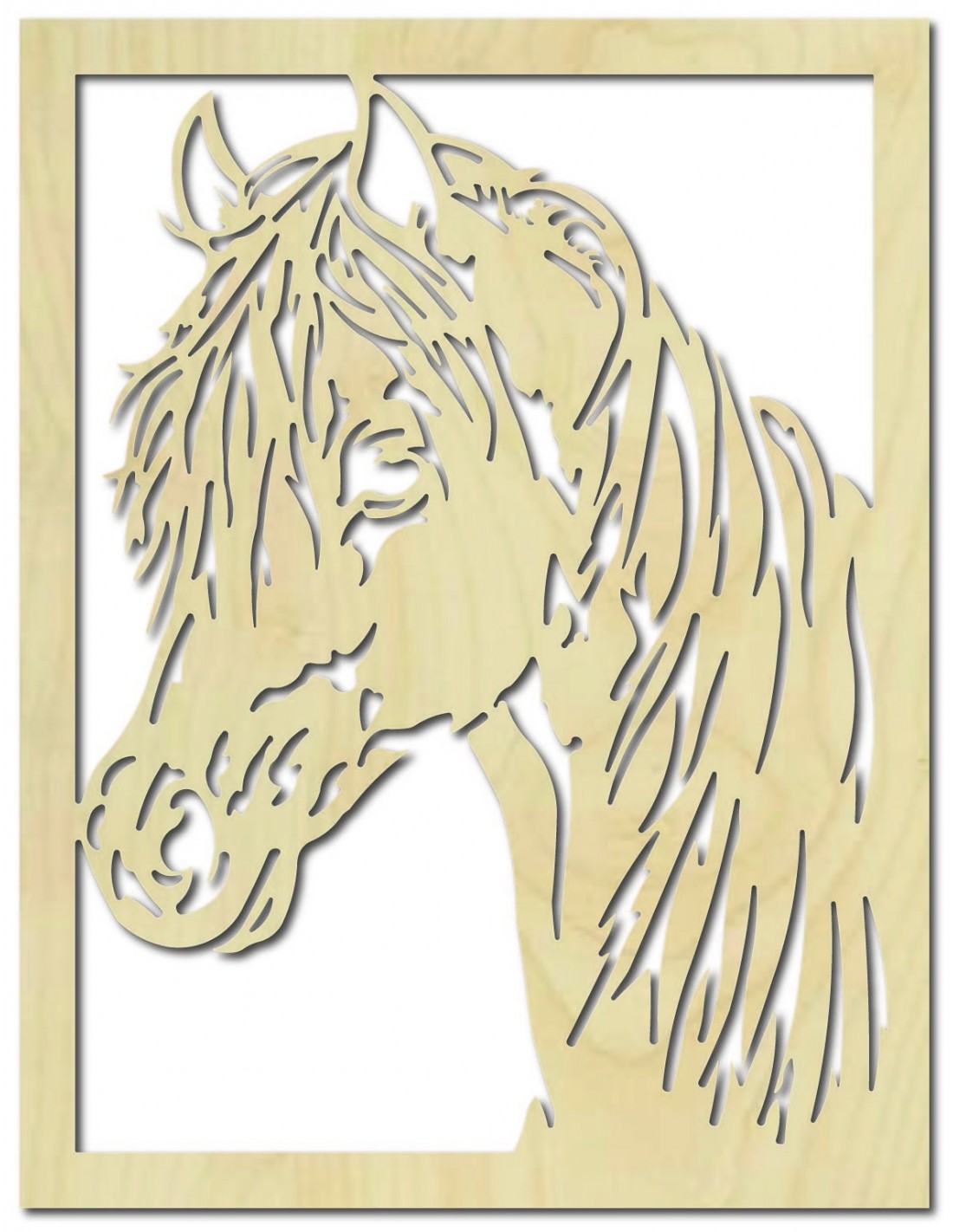 Geschnitztes Wandgemälde aus Holzsperrholz, Pferdekopf