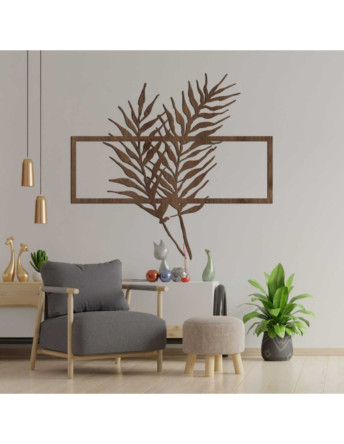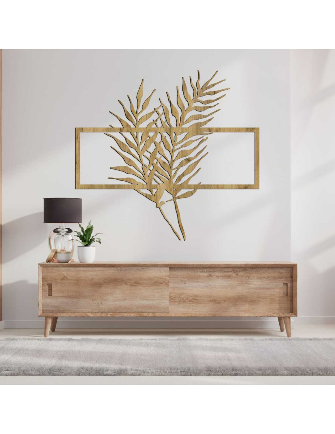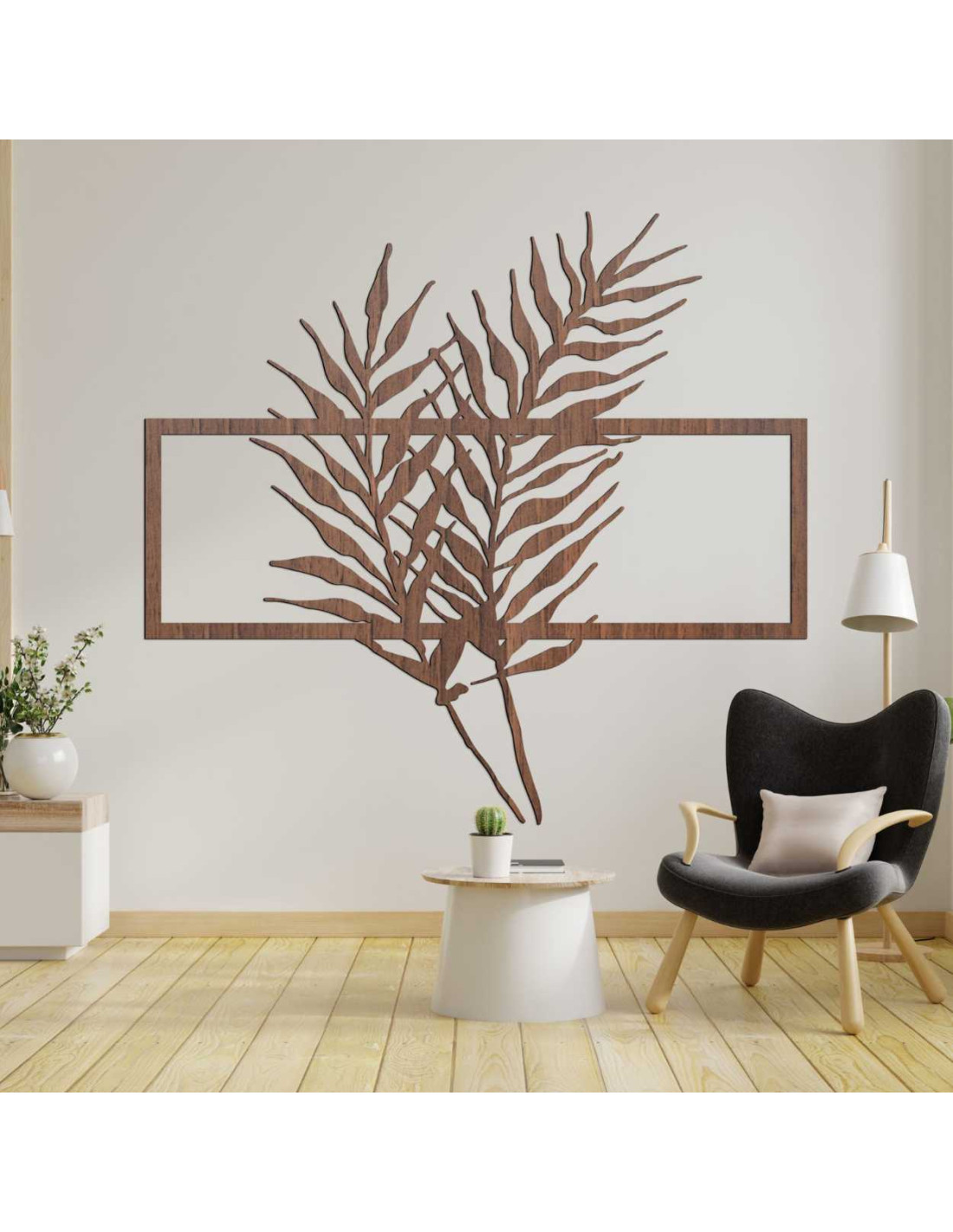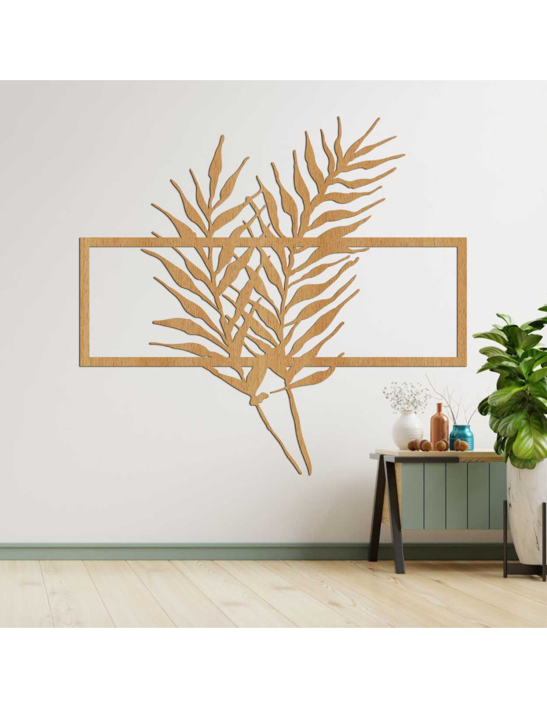 Holzbild mit minimalistischen Blättern im Rahmen - FARN