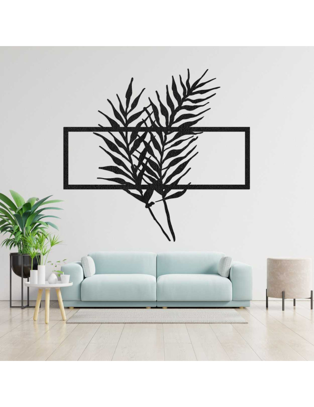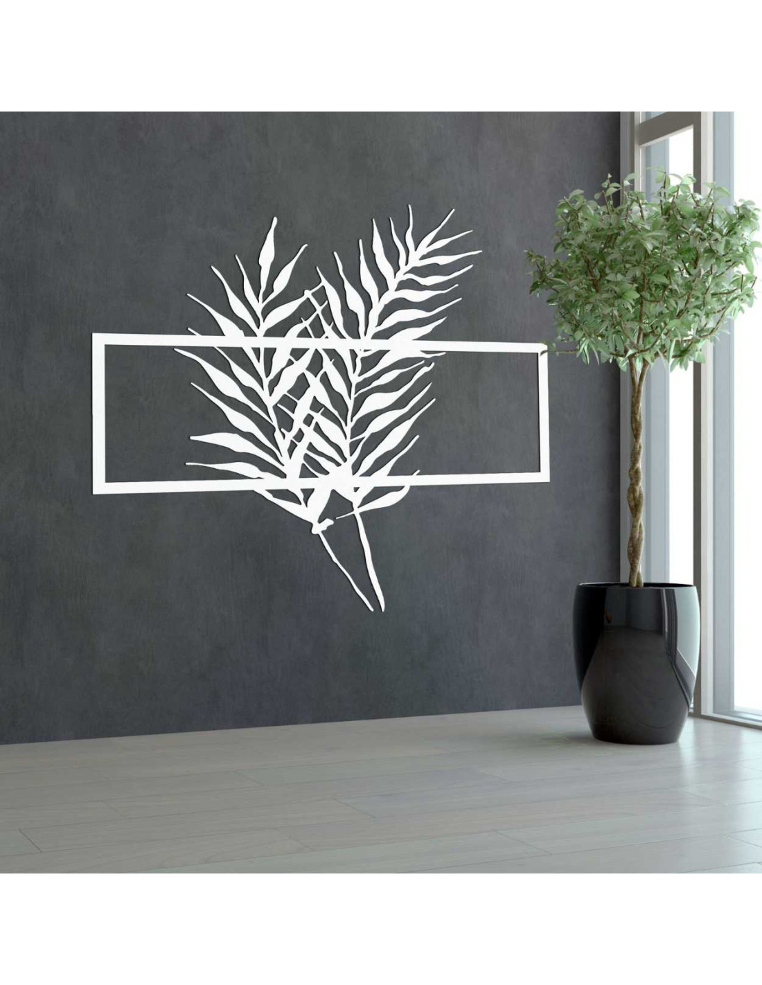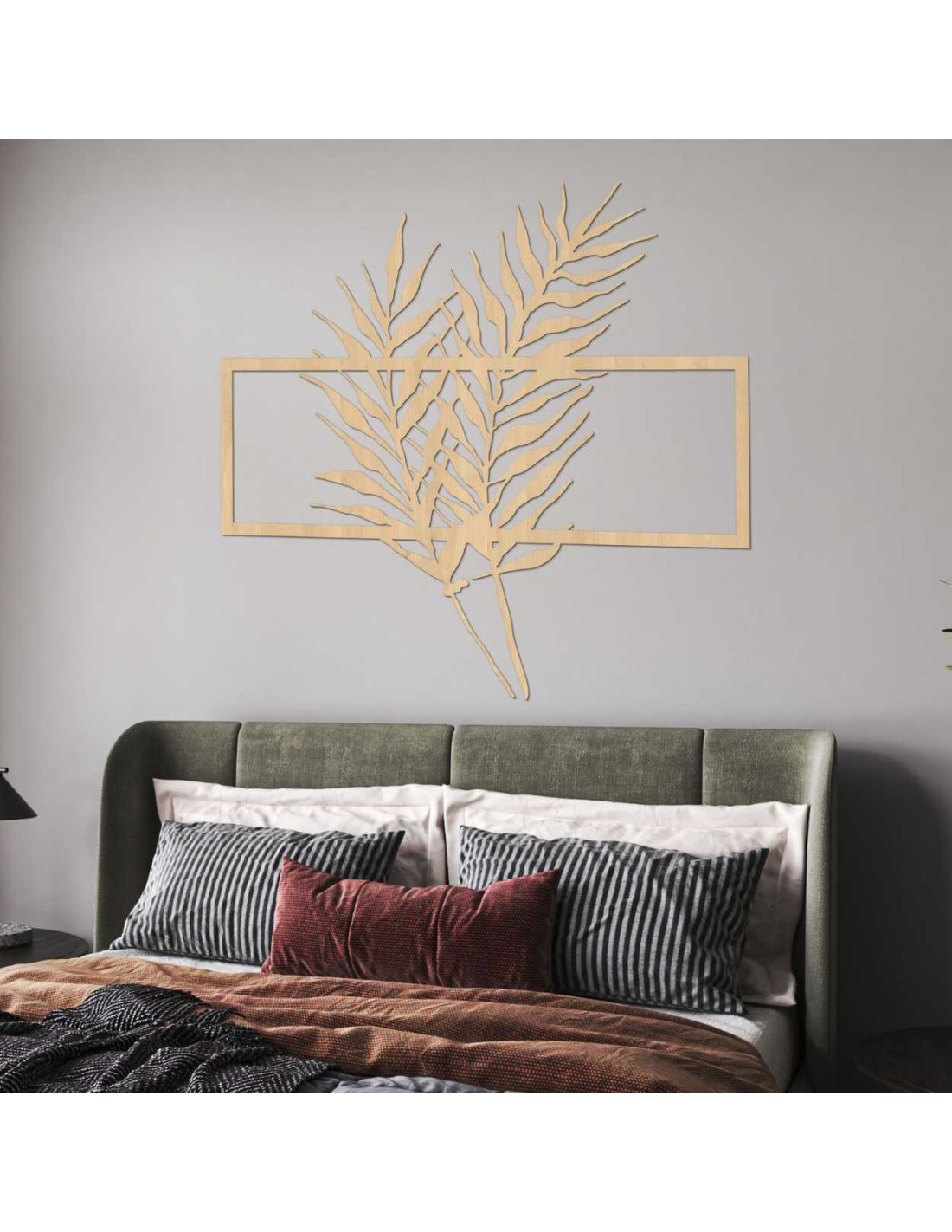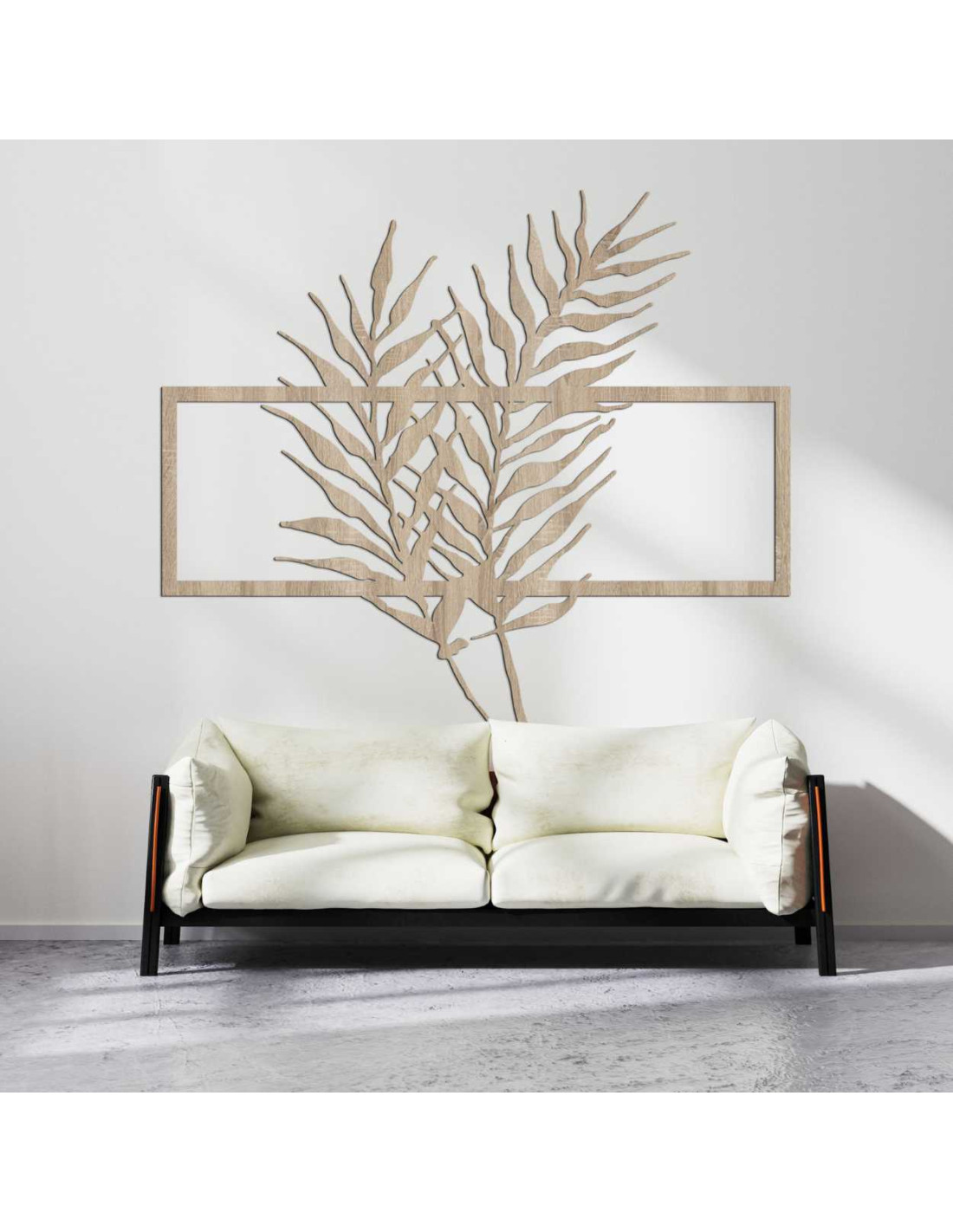 Holzbild mit minimalistischen Blättern im Rahmen - FARN