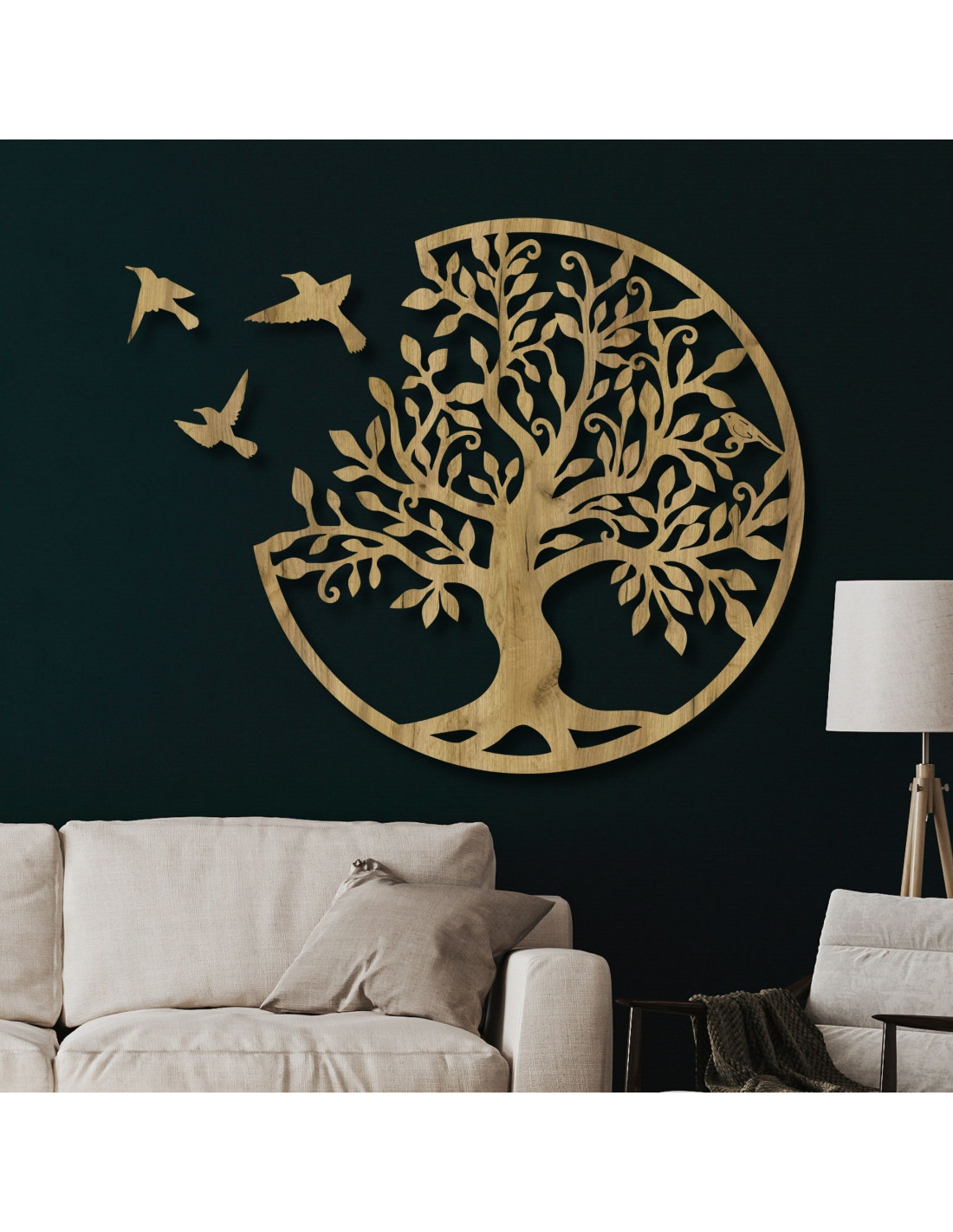 Elegante Wanddekoration aus Holz in Form eines Lebensbaums mit Vögeln bringt Harmonie und natürliche Schönheit in Ihr Zuhause. Dieses einzigartige Designbild aus Sperrholz wird mit präziser Lasertechnologie geschnitzt und anschließend von Hand nachbearbeitet , um eine perfekte Optik und ein hochwertiges Finish zu erzielen.