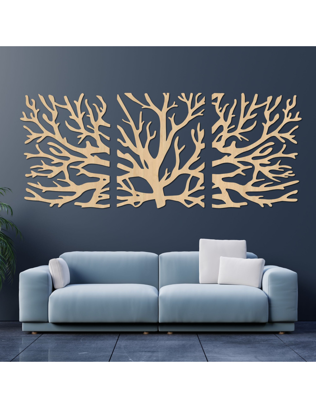 Dreiteiliges Bild aus Ästen – Moderne Baumzweige an der Wand