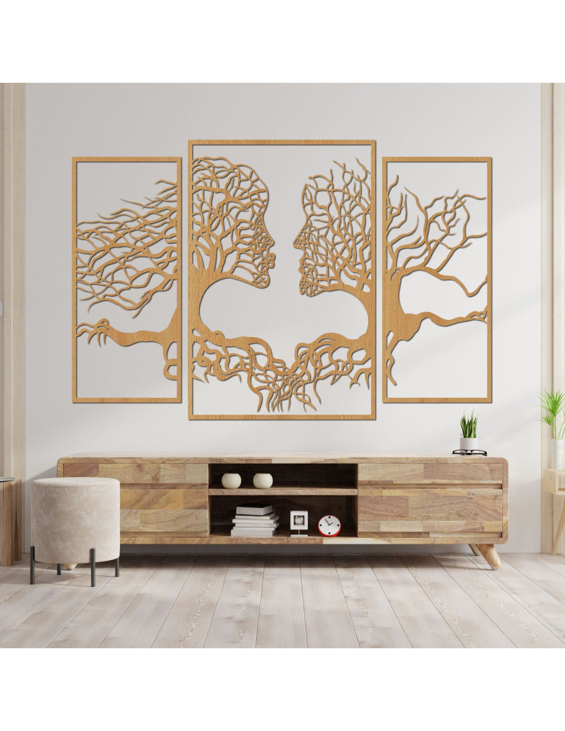 SentopDas dreiteilige Gem älde stellt die Verbindung zwischen Mensch und Natur dar, wobei Bäume und menschliche Gesichter harmonisch ineinander übergehen. Die visuellen Elemente regen zum Nachdenken über unsere Beziehungen zur Natur und zu anderen Menschen an. Dieses Design bietet einen zeitgenössischen Look, der sich perfekt in jedes Interieur einfügt und ihm Pep und Einzigartigkeit verleiht. Dieses Gemälde ist nicht nur ästhetisch ansprechend, sondern vermittelt auch eine tiefgründige Botschaft von Einheit und Harmonie, was es zu einer idealen Ergänzung für Wohnzimmer, Büros oder Galerien macht