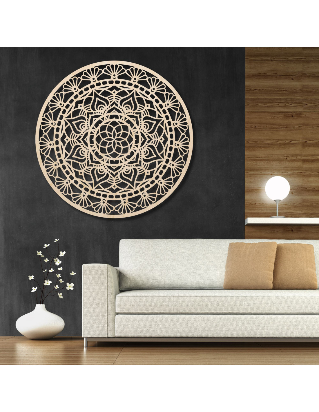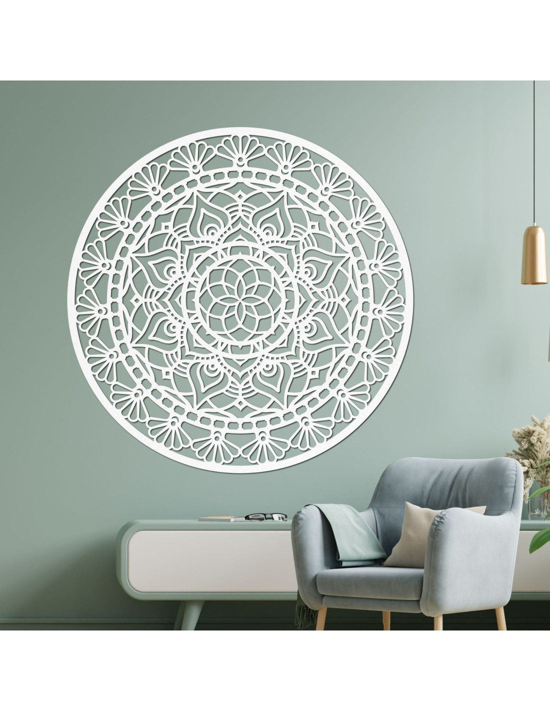Das Design dieses Mandalas ist inspiriert von dem uralten Symbol der Blume des Lebens, das in verschiedenen Kulturen zu finden ist und die Grundprinzipien des Universums und des Lebens darstellt. Es wird angenommen, dass es die Fähigkeit hat, die Energie eines Raumes zu verbessern und den inneren Frieden zu fördern.