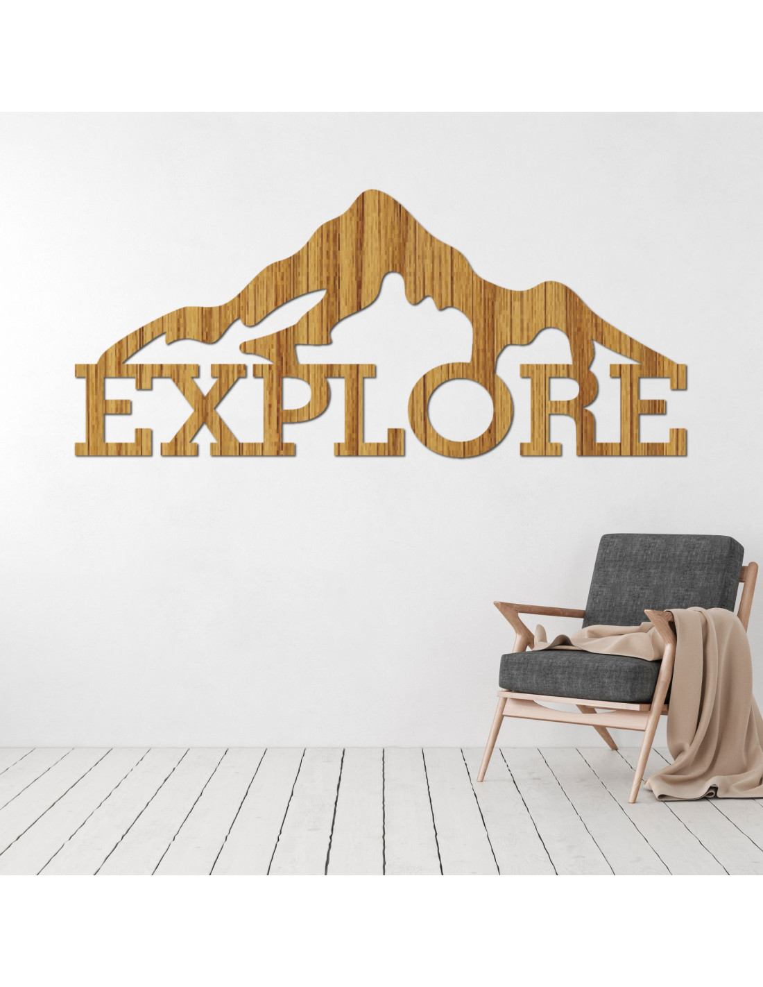 Das Holzbild "EXPLORE" mit der Silhouette eines Berges ist der perfekte Ausdruck der Liebe zur Natur und zum Abenteuer. Sein natürliches Design und die hochwertige Verarbeitung sind eine stilvolle Ergänzung für jedes Interieur. Dieses dekorative Element symbolisiert Freiheit und Inspiration und lädt dazu ein, neue Horizonte zu entdecken. Ein ideales Geschenk für Naturliebhaber, das dem Raum einen einzigartigen Charakter verleiht.
