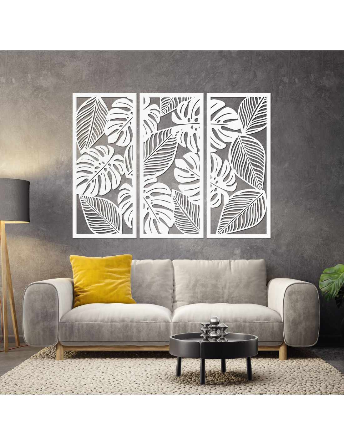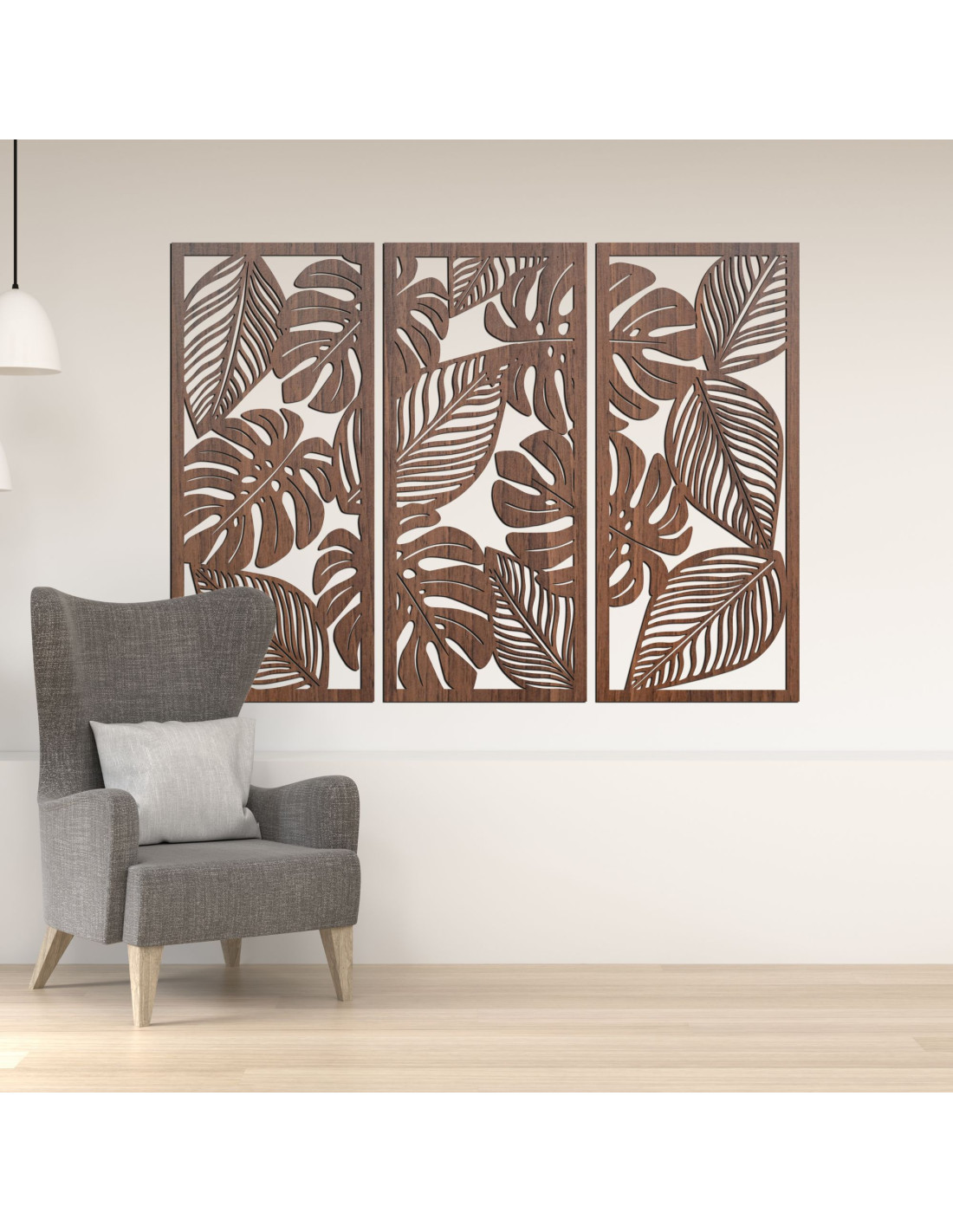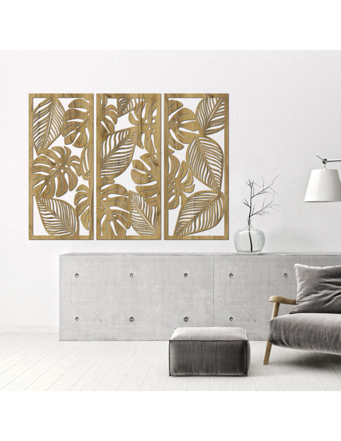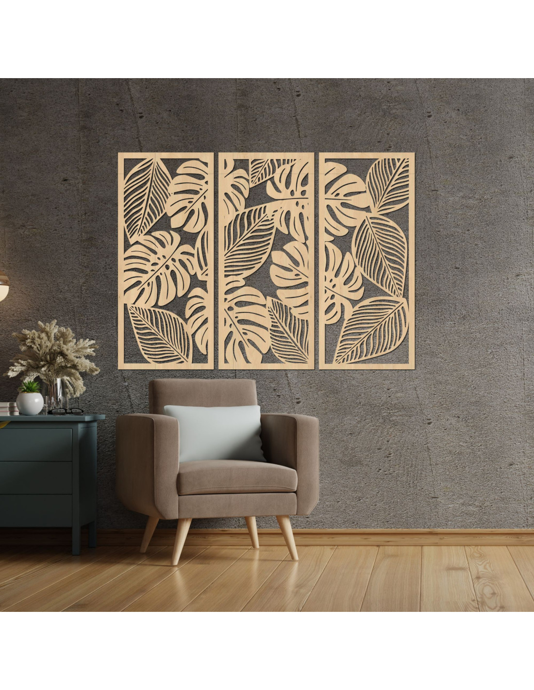 Erleben Sie natürliche Harmonie mit unserem dreiteiligen Monstera-Wandbild aus Holz .