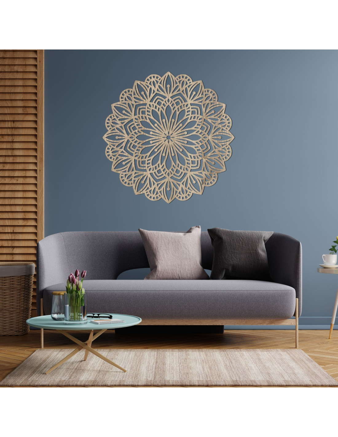 Dieses Mandala aus Blumenblättern ist eine originelle Wanddekoration aus Holz, die subtile Eleganz mit harmonischem Design verbindet. Das sorgfältig geschnitzte Muster erinnert an natürliche Motive und bringt ein Gefühl von Ruhe und Ausgeglichenheit in Ihr Zuhause. Dieses einzigartige Accessoire kann jedes Interieur beleben und seinen Charakter unterstreichen. Das Mandala ist nicht nur eine Dekoration, sondern auch ein Träger positiver Energie, der Ihren Raum in einen Ort voller Harmonie und ästhetischer Schönheit verwandelt.