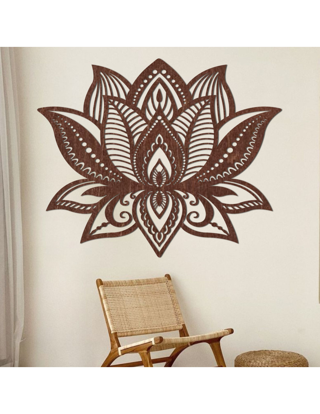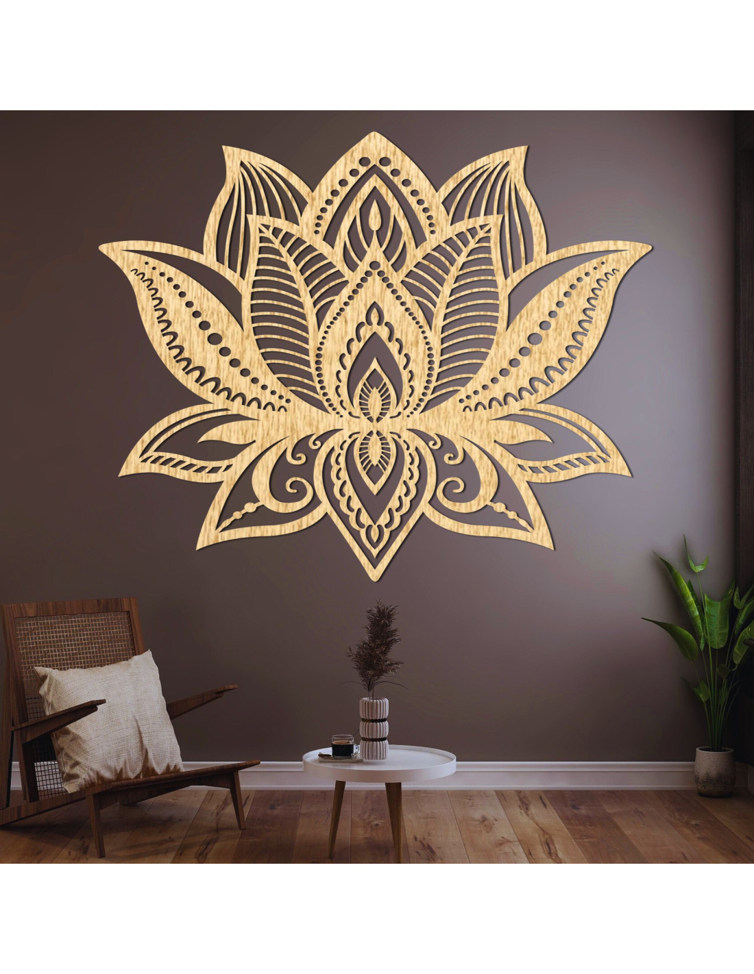 Edle Lotusblume aus Holz – Wanddekoration für Liebhaber des natürlichen Stils.