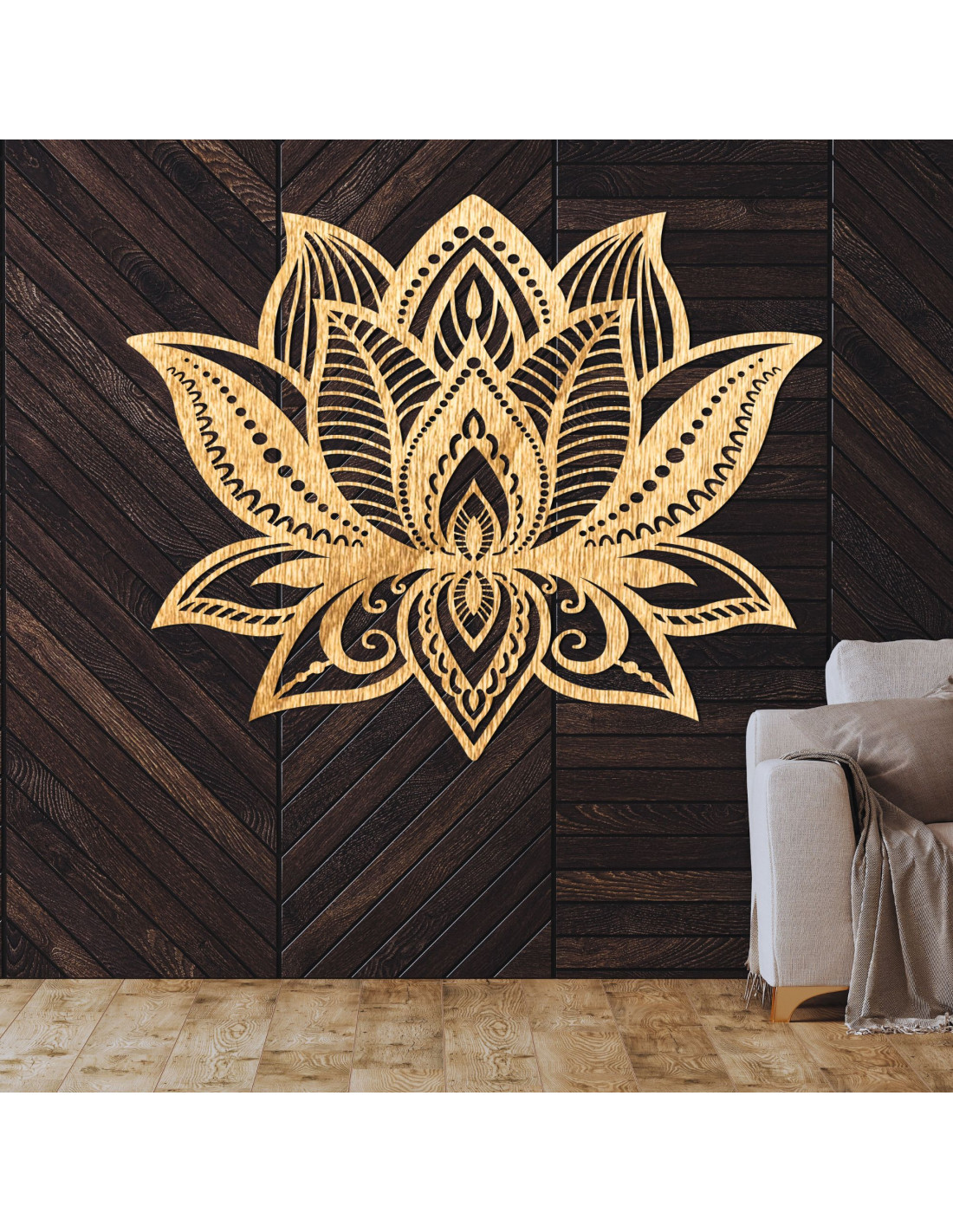 Die Lotusblume ist seit der Antike ein Symbol für Reinheit, Wiedergeburt und inneren Frieden. Dieses Wandbild aus Holz bringt Ausgeglichenheit, Frieden und sanftes Licht in Ihr Zuhause und erfüllt den Raum mit positiver Energie.