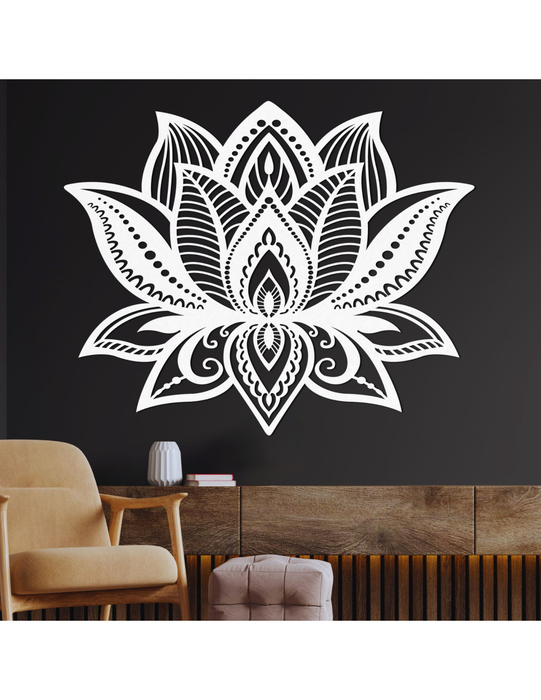 Die Symmetrie der Lotusblume symbolisiert einen Neuanfang, Reinheit und innere Stärke, während die sorgfältig geschnitzten Details jedem Raum eine einzigartige Textur und einen warmen Hauch von Holz verleihen.