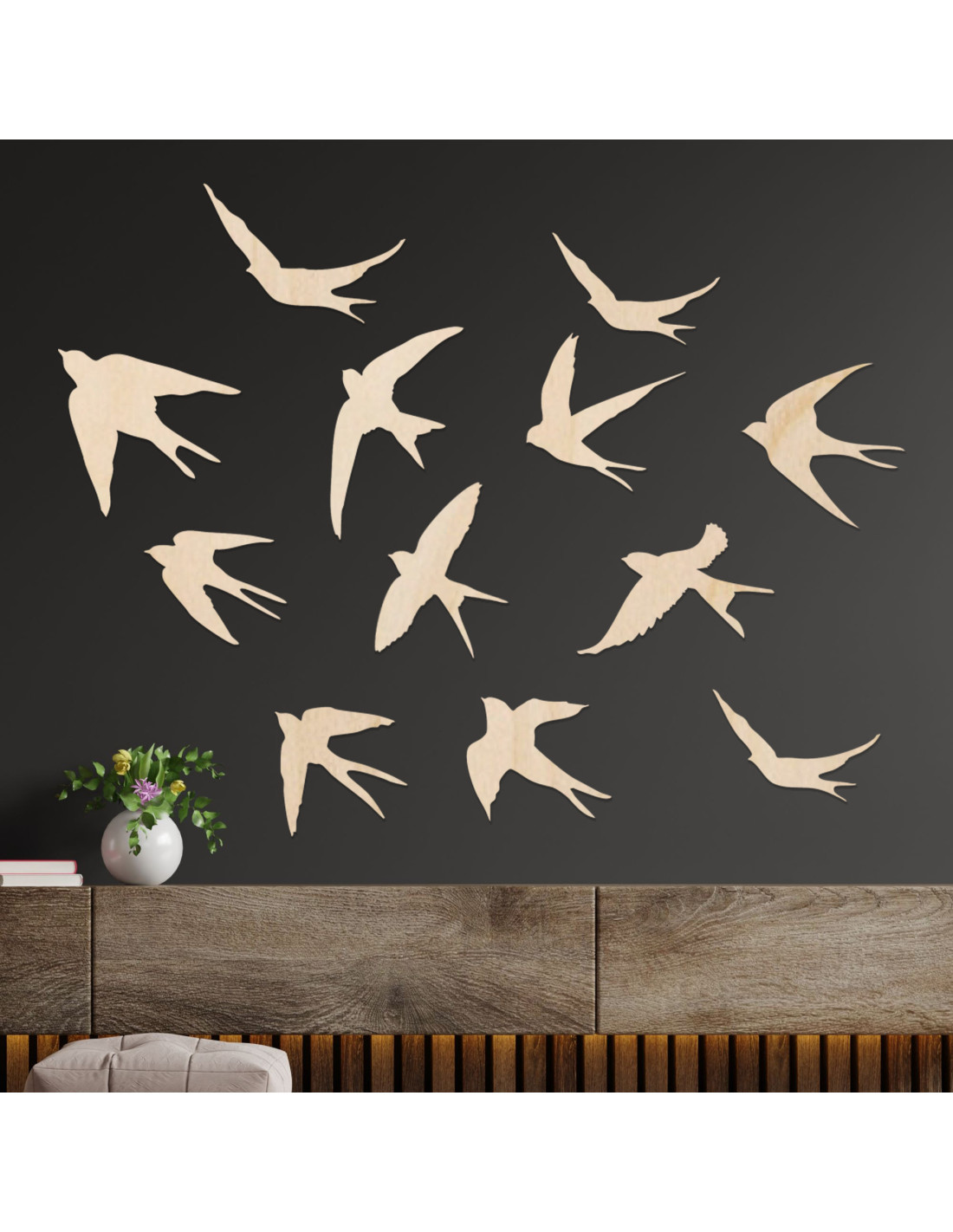 Wanddekoration aus Holz mit fliegenden Vögeln -...