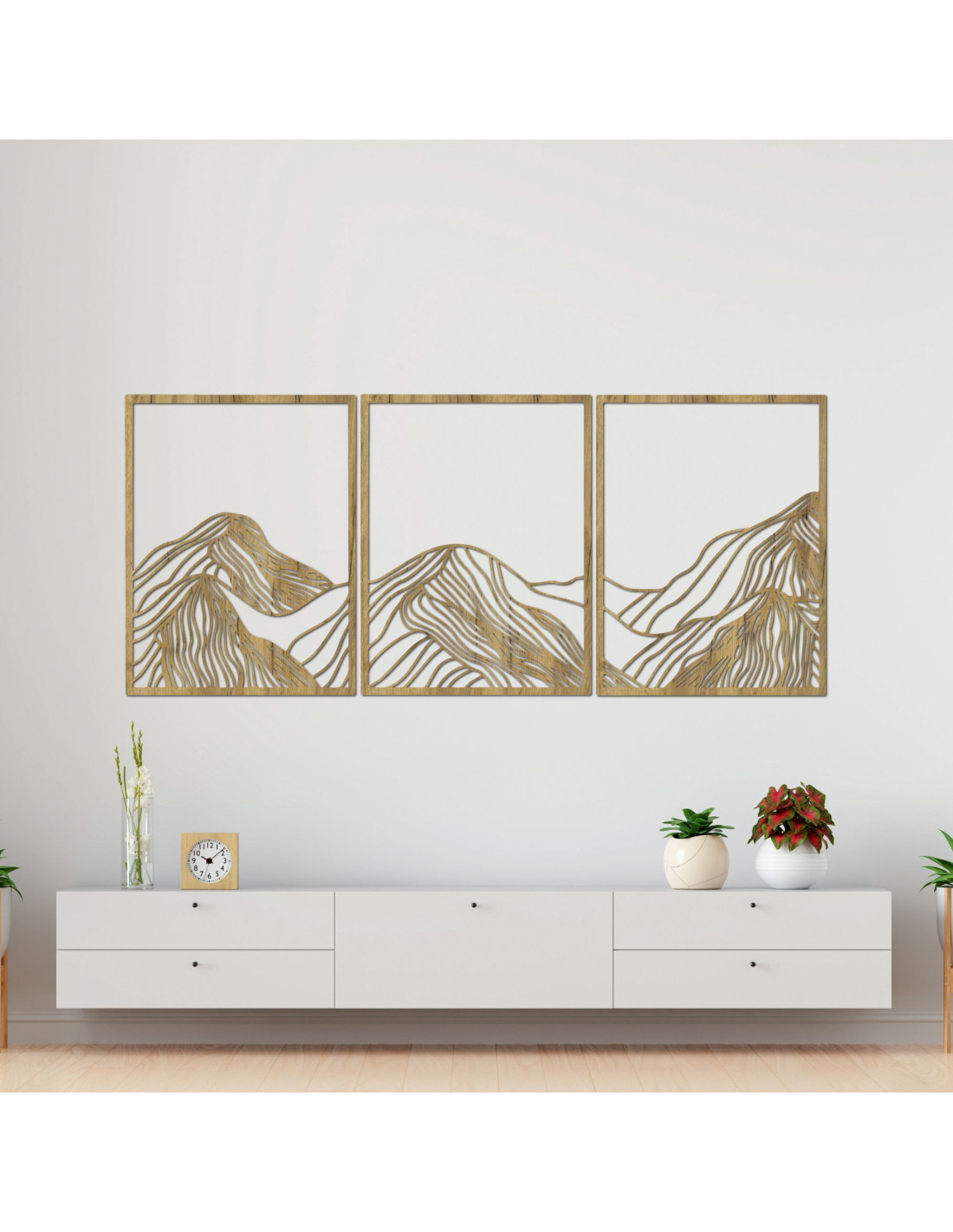 Verschönern Sie Ihr Zuhause mit dieser prächtigen Holzdekoration, die die zeitlose Schönheit der Berge einfängt. Sorgfältig geschnitzte Linien schaffen die perfekte Balance zwischen Minimalismus und Kunst. Das dreiteilige Design ermöglicht eine variable Anordnung und passt somit perfekt in Ihr Interieur. Die perfekte Wahl für alle, die nach einem originellen und stilvollen Accessoire suchen.