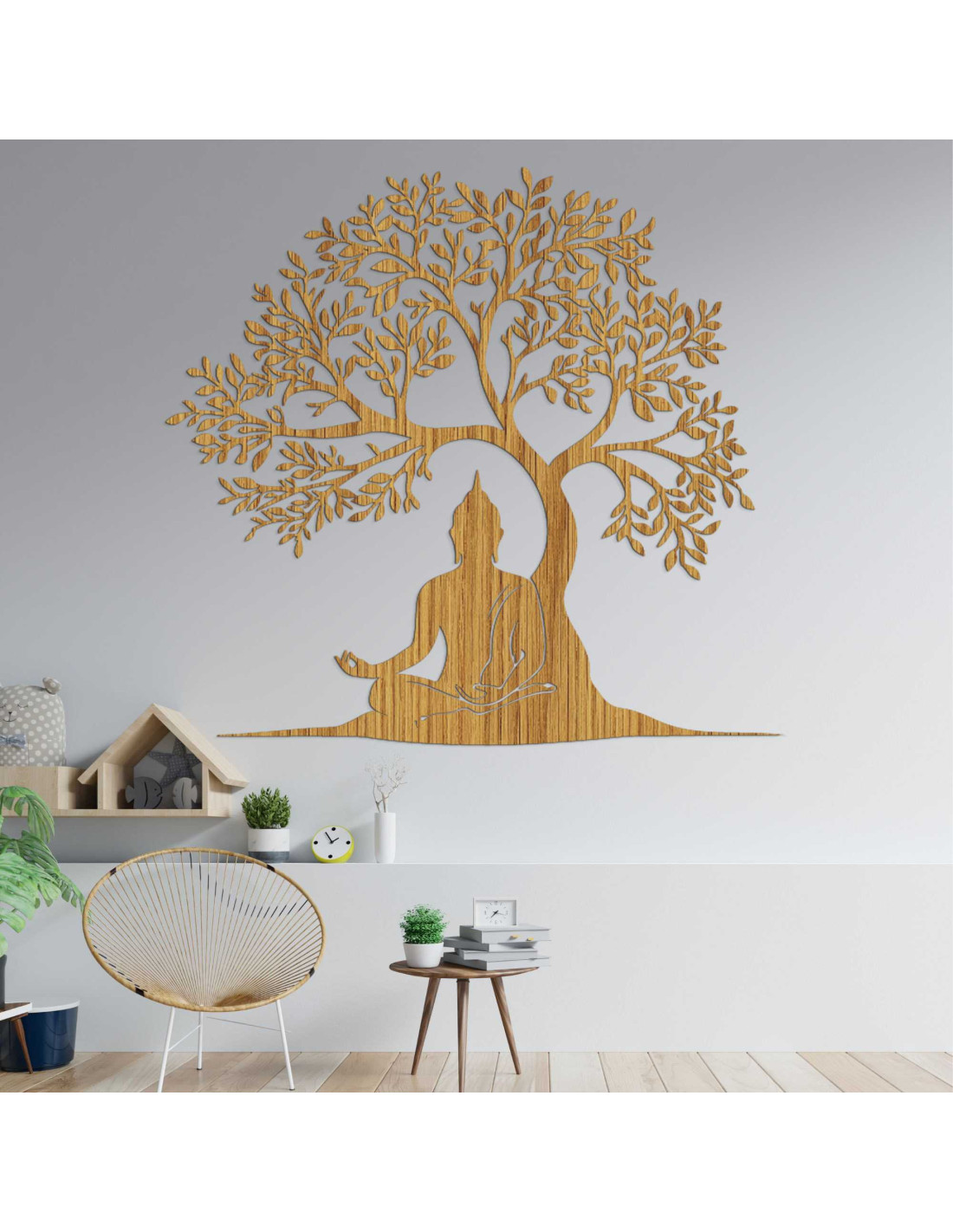 Holzbild des Lebensbaums und Buddhas - MOTERO