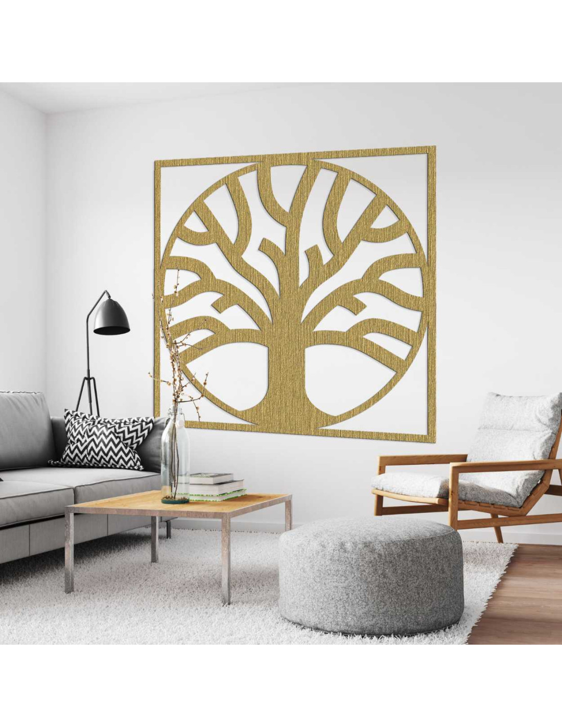 Wanddekoration aus Holz, quadratisch, Baum des Lebens und der Sanftmut - BALERIAN