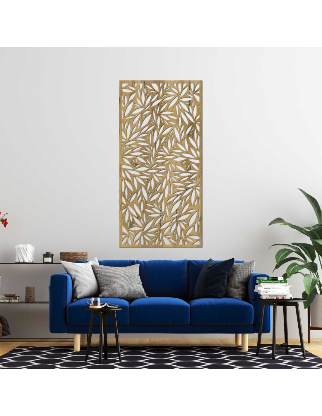 Wandpaneel aus Holz mit eingewebtem Blättermuster