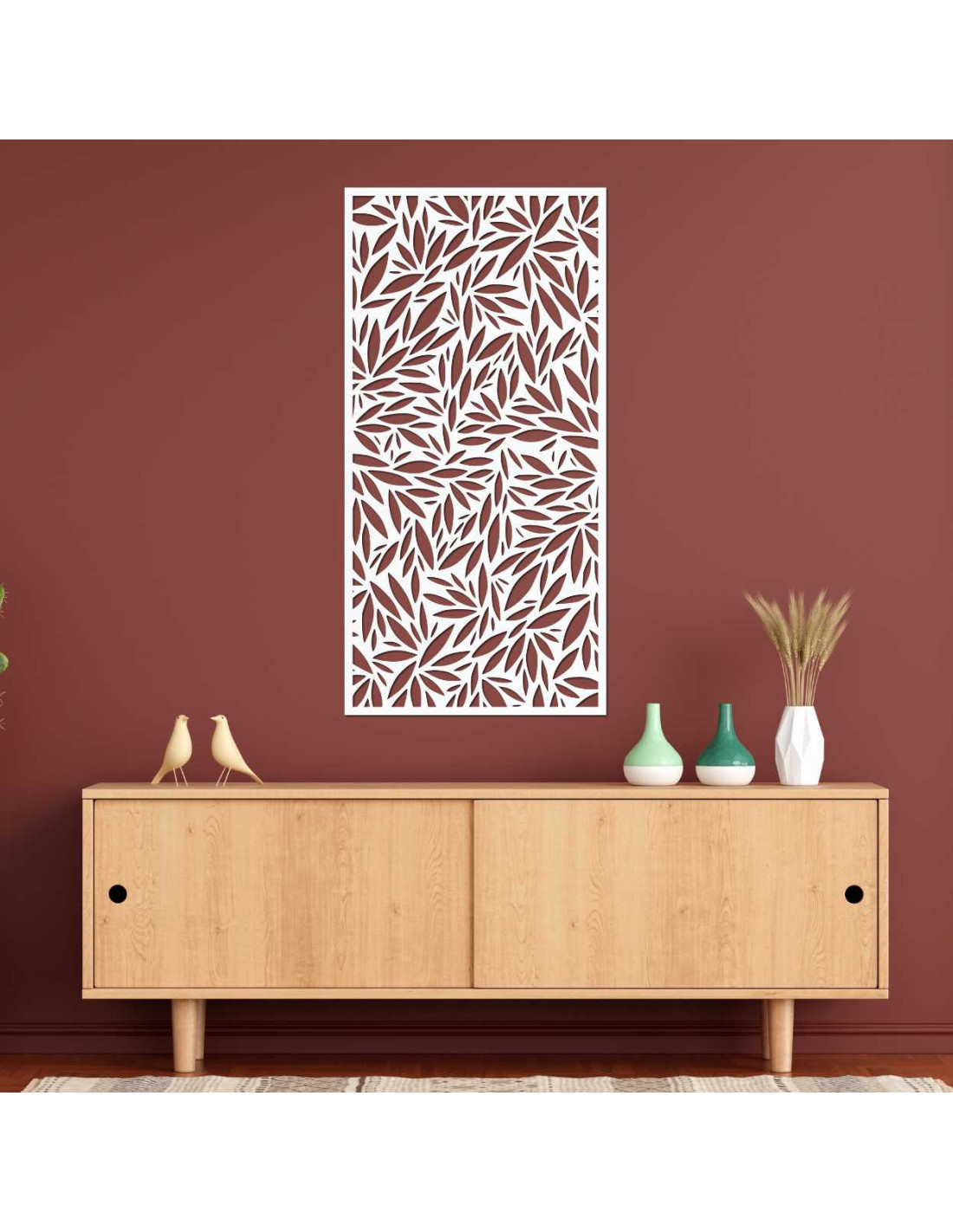 Dekoratives Paneel mit Blattausschnitten an einer hellen Wand