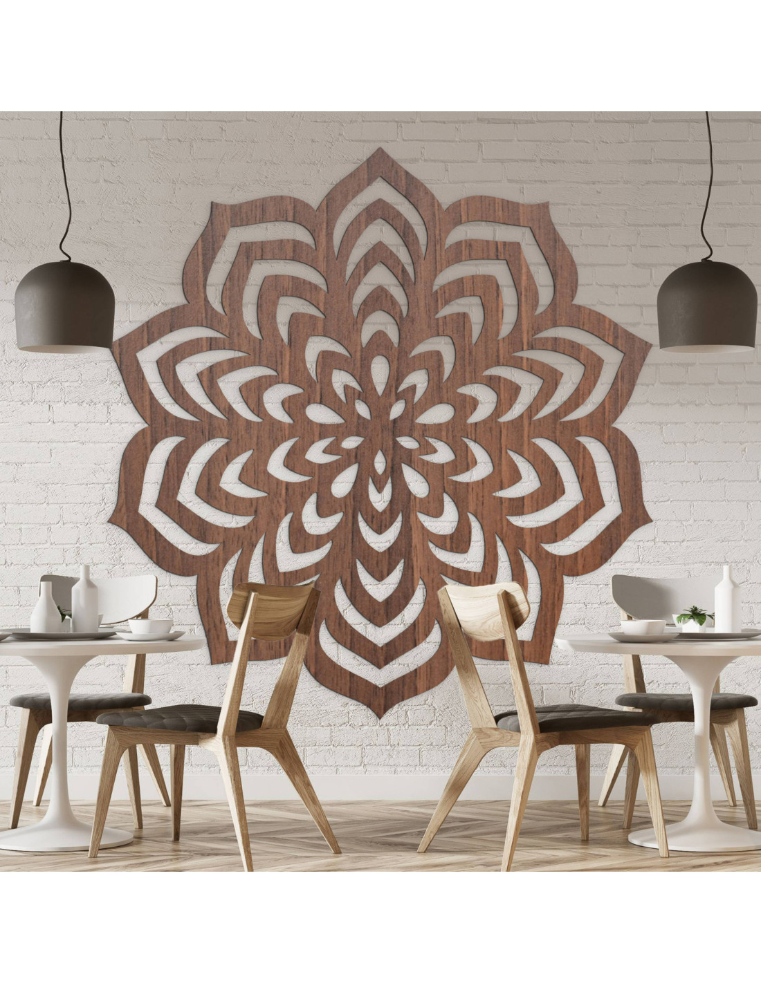 Das hölzerne Mandala fängt Bewegung in der Stille und Einfachheit in der Komplexität ein.