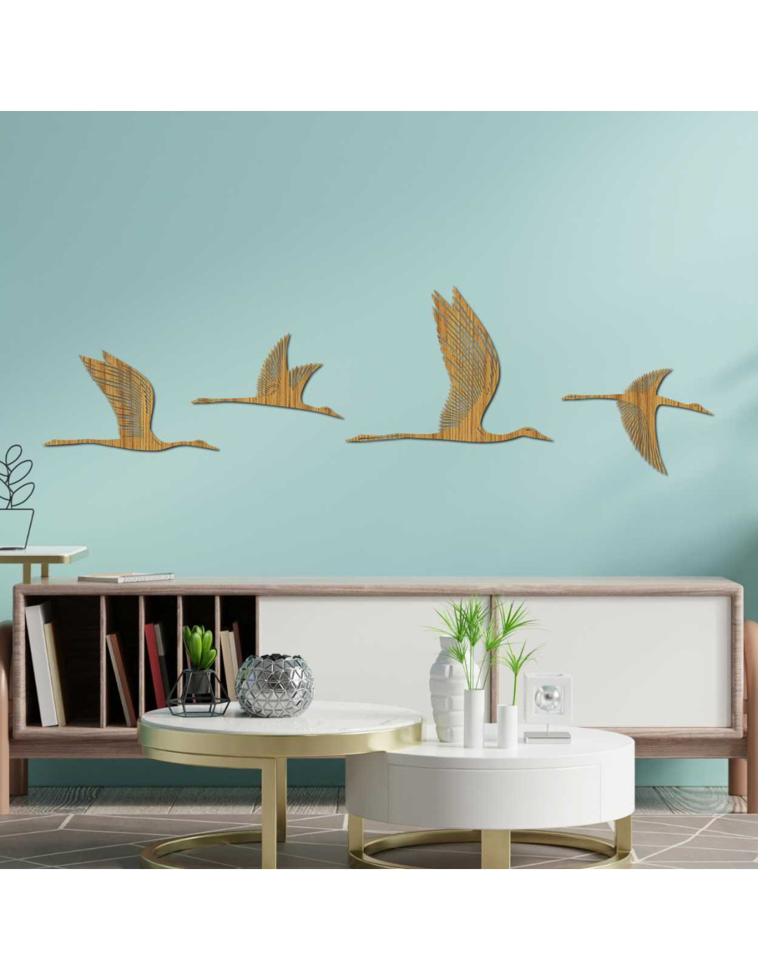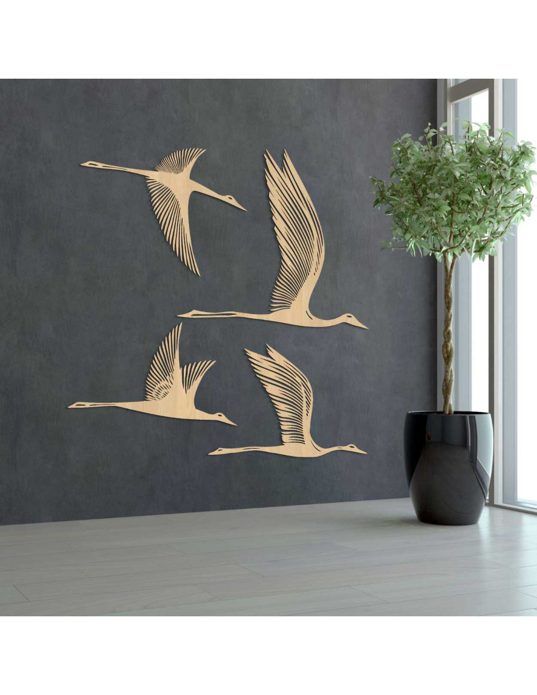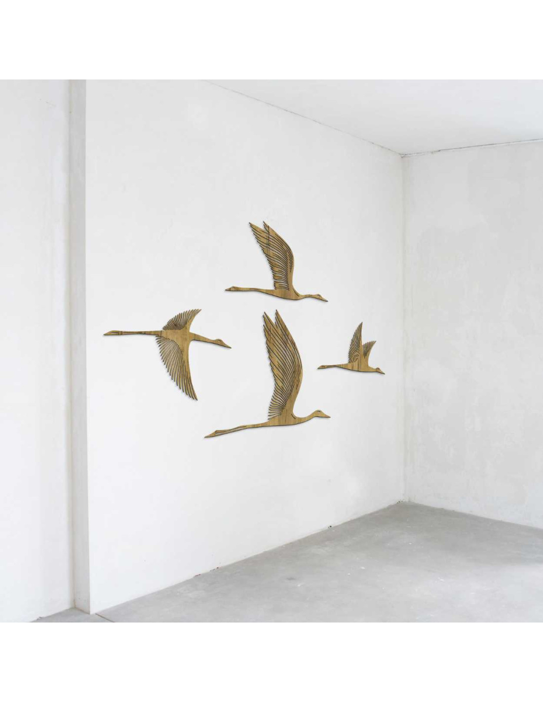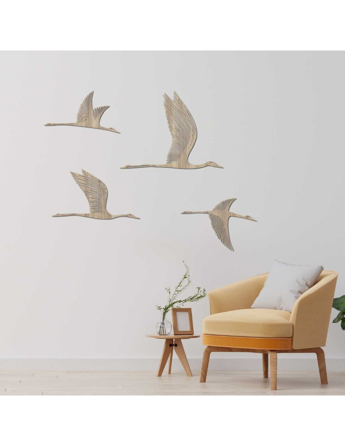 Wanddekoration aus Holz mit vier fliegenden Vögeln im minimalistischen Stil
