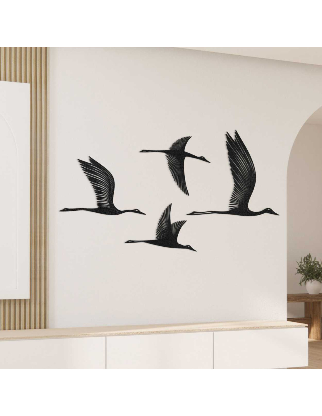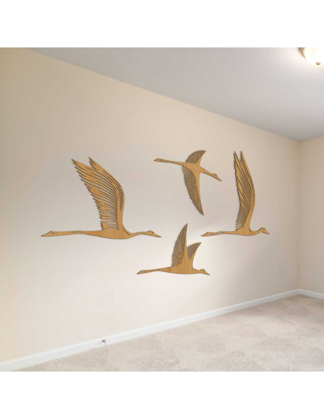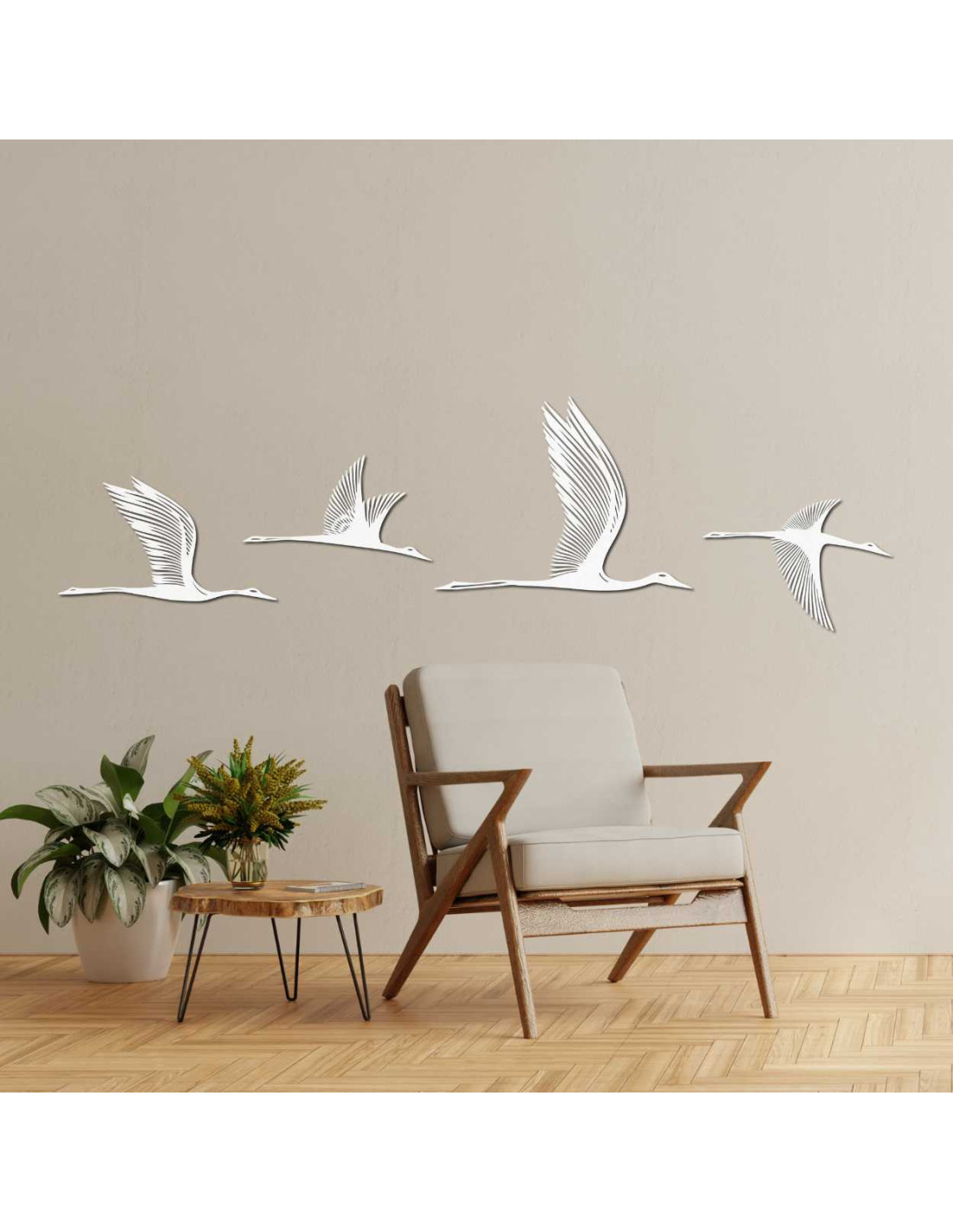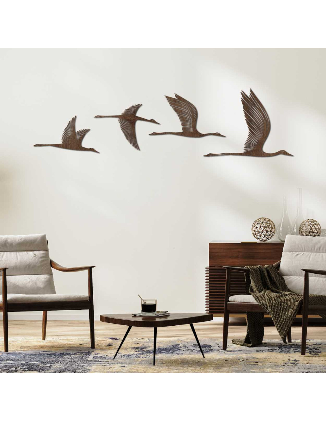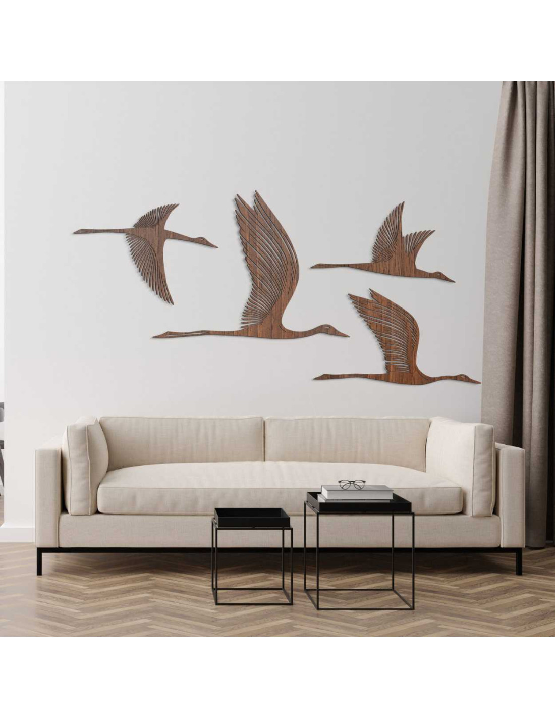 Wanddekoration aus Holz mit vier fliegenden Vögeln im minimalistischen Stil