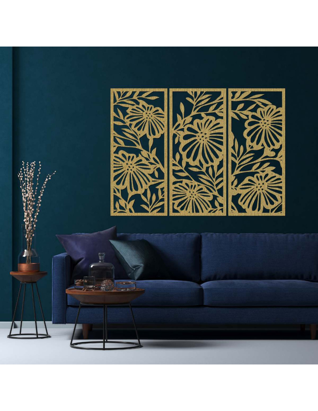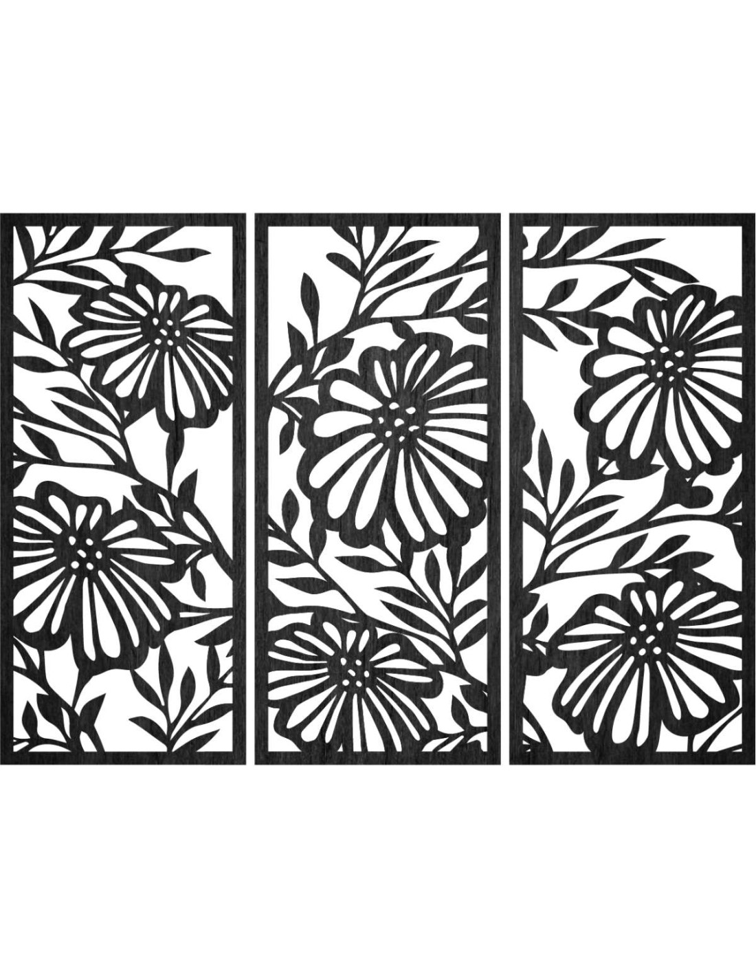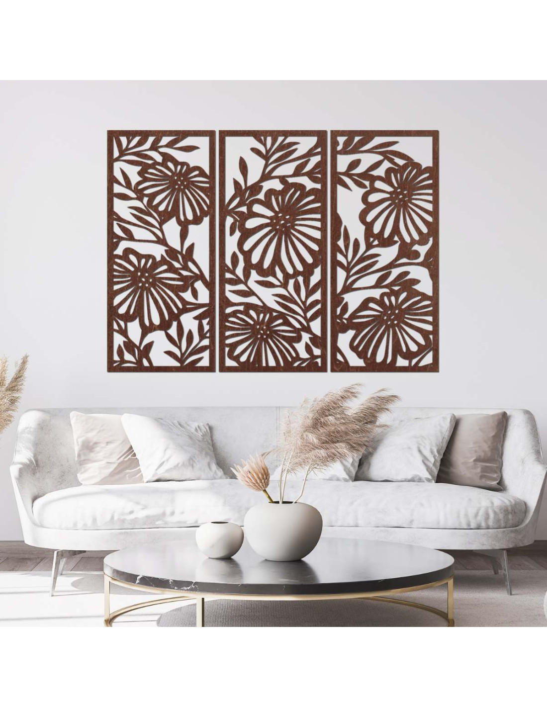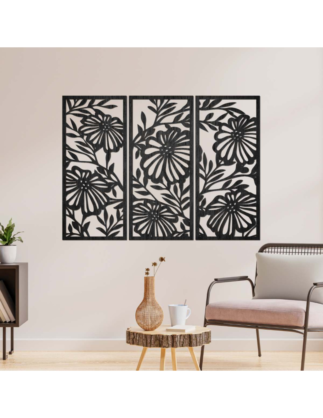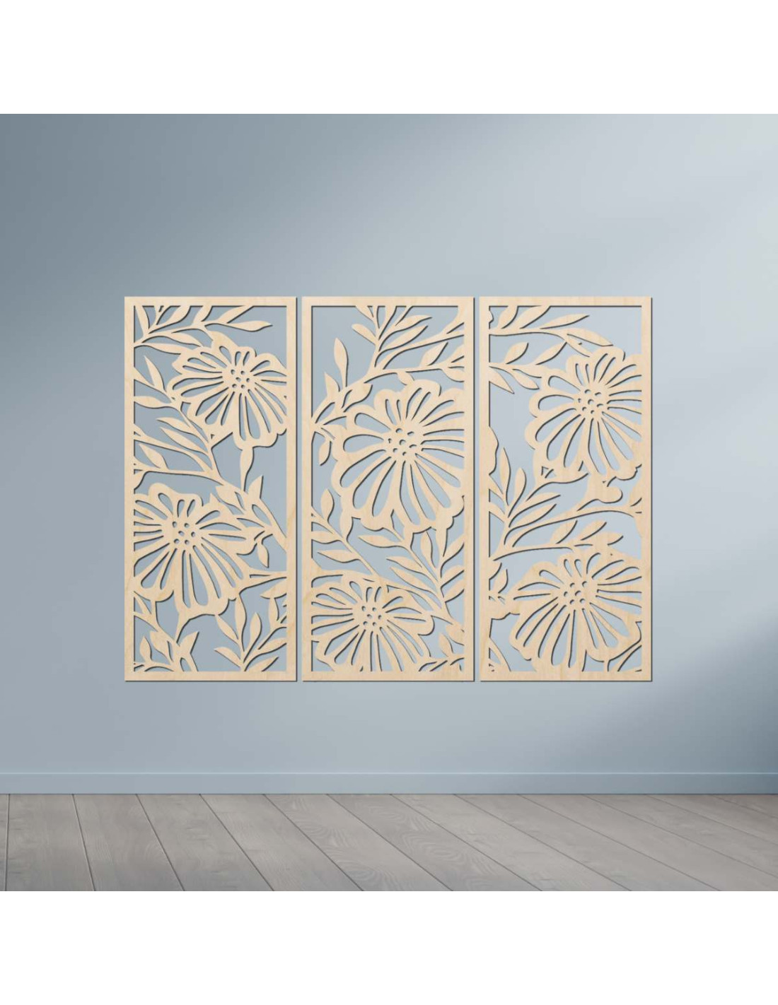 Dreiteiliges Wandbild aus Holz mit floralem Motiv - AMFIL