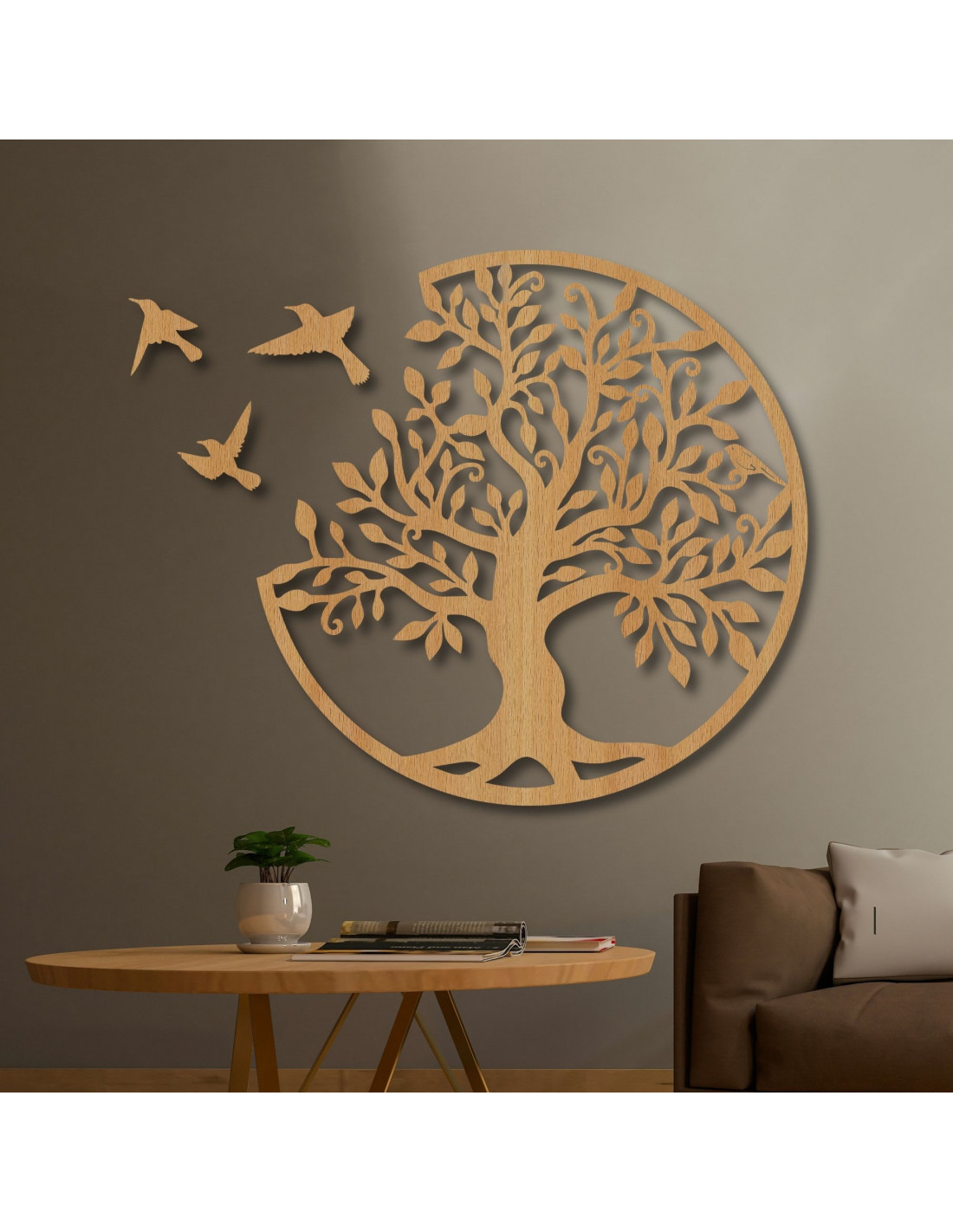 Entdecken Sie Schönheit und Ausgeglichenheit mit unserer exklusiven Holzwanddekoration Lebensbaum mit Vögeln , die Harmonie, positive Energie und einen Hauch von Natur in Ihr Zuhause bringt. Dieses einzigartige Symbolbild ist nicht nur ein Design-Accessoire – es strahlt Ruhe, Kraft und Raum für persönliches Wachstum aus.