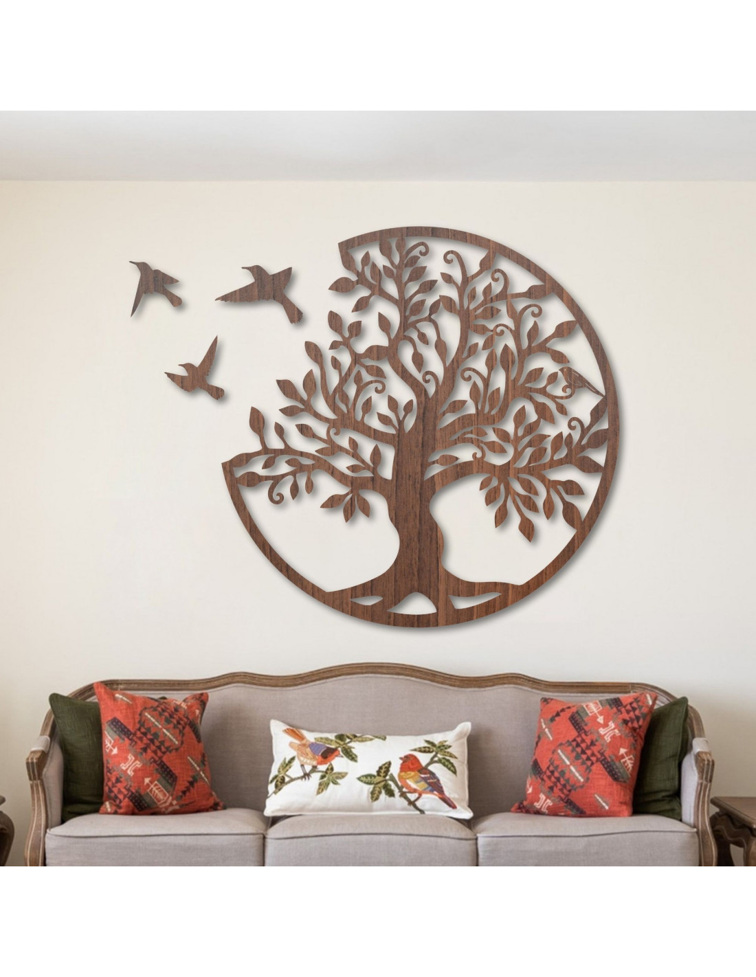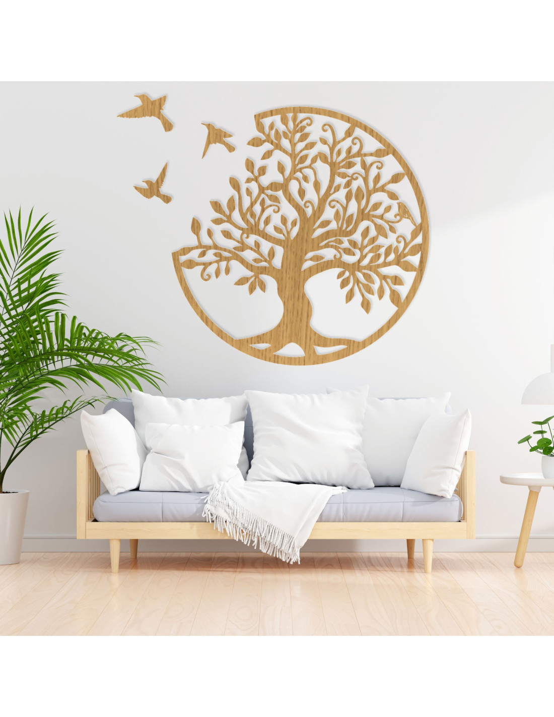Lebensbaum aus Holz mit Vögeln - Natürliche Wanddekoration | GORCHLO