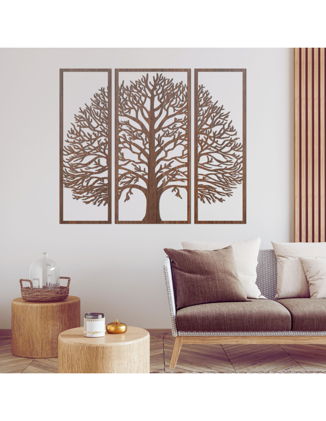 Holzwanddeko Lebensbaum: 3-teilige Holzwanddeko - DIVISA
