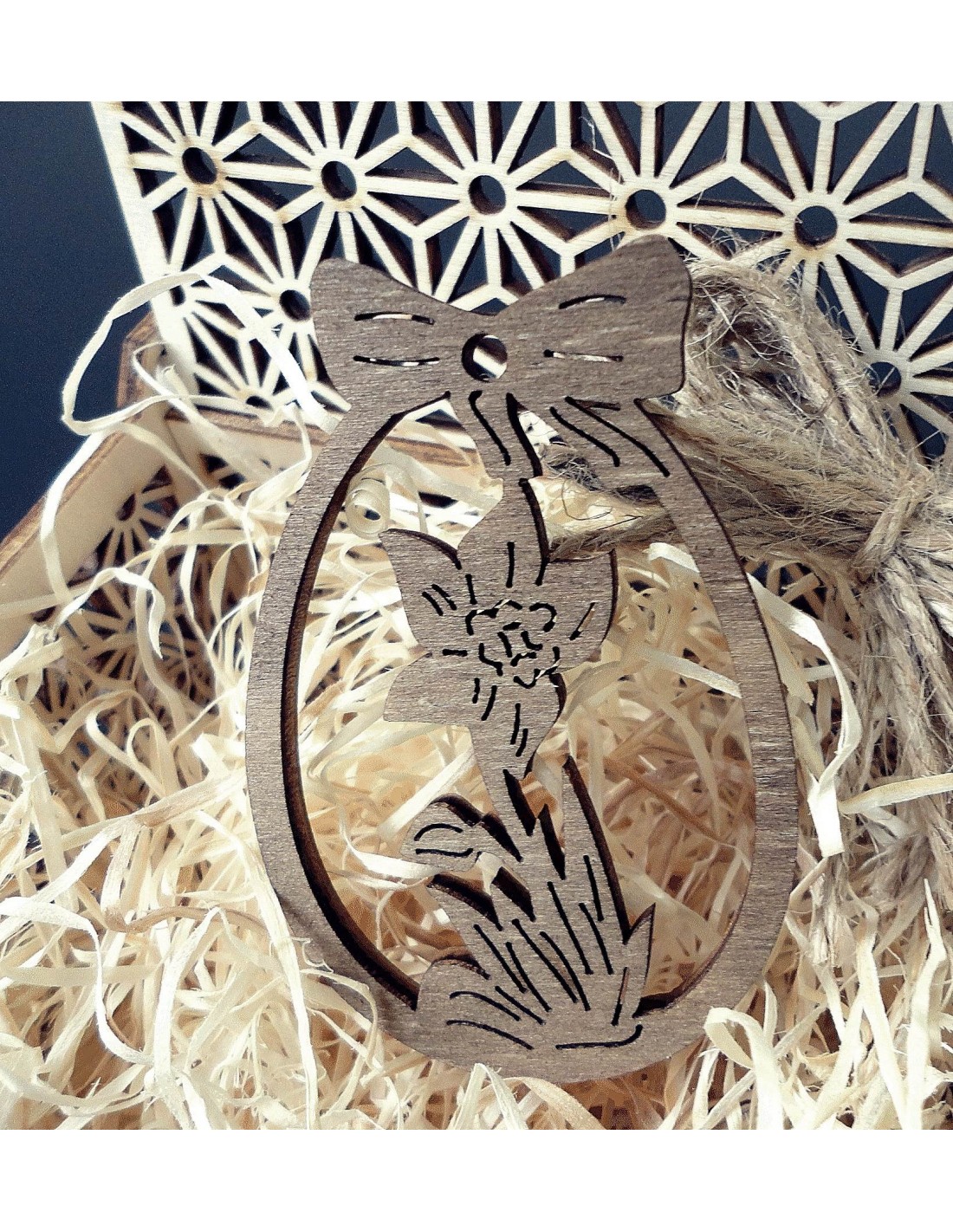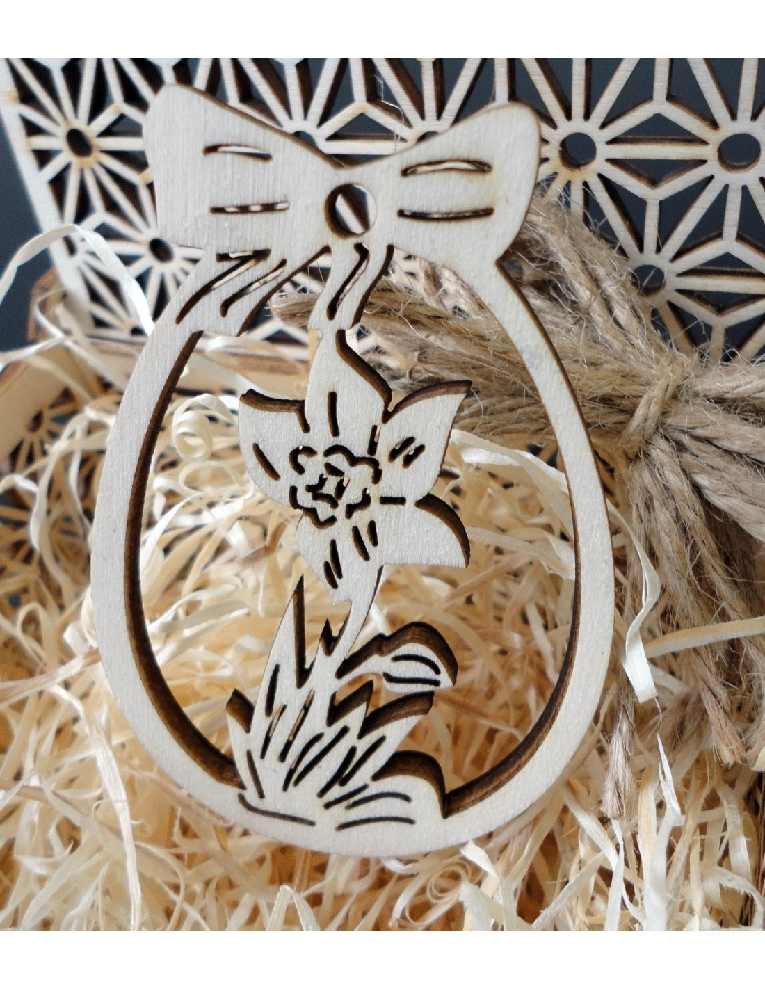 Ein dekoratives Holzei mit geschnitztem Blumenmotiv und Schleife ist eine tolle Ergänzung für jedes Zuhause. Perfekt für Osterfeiern oder als künstlerisches Element, das Ihrem Interieur Stil und Einzigartigkeit verleiht. Mit diesem schönen Ei beleben Sie jeden Raum und schaffen eine fröhliche Atmosphäre!