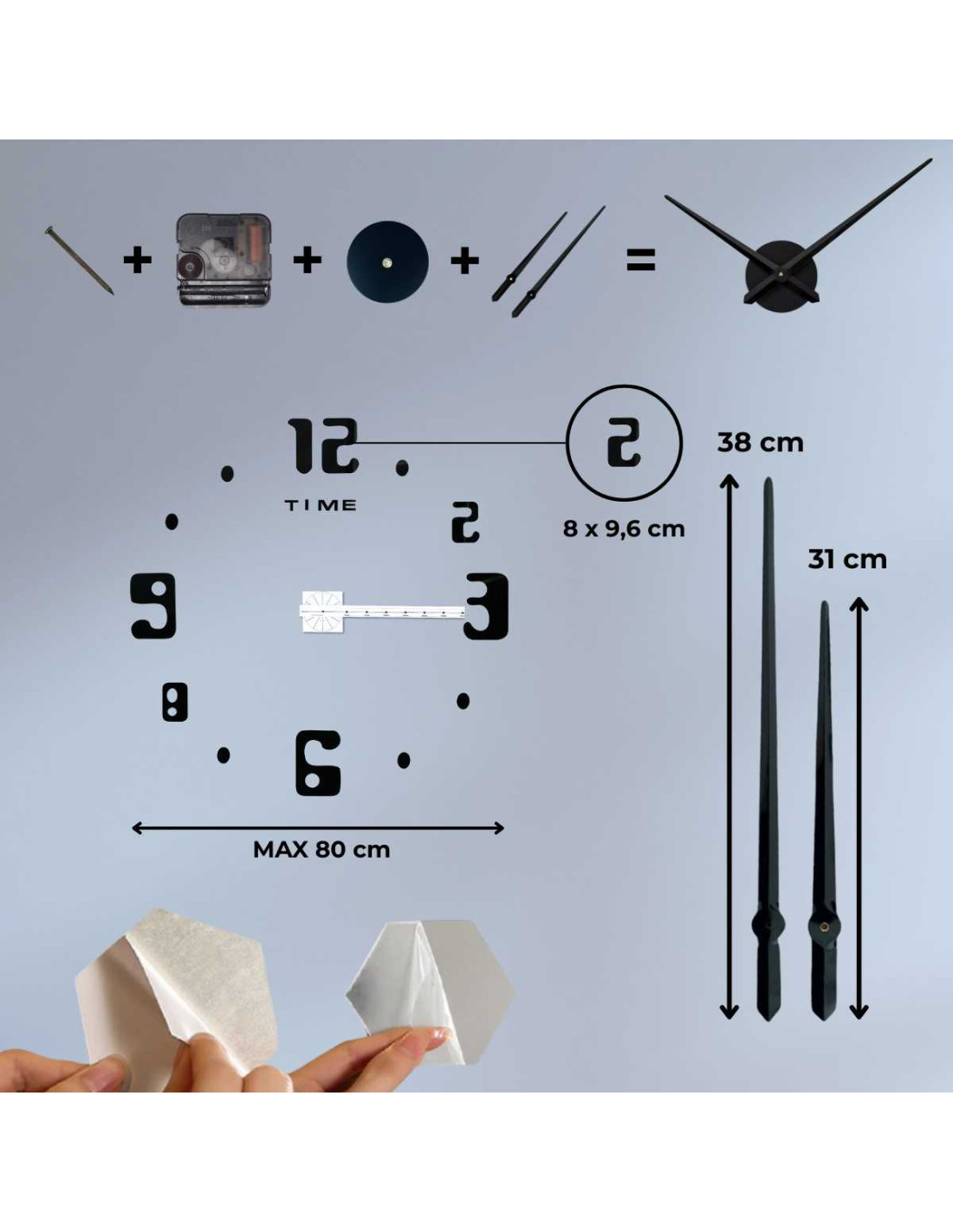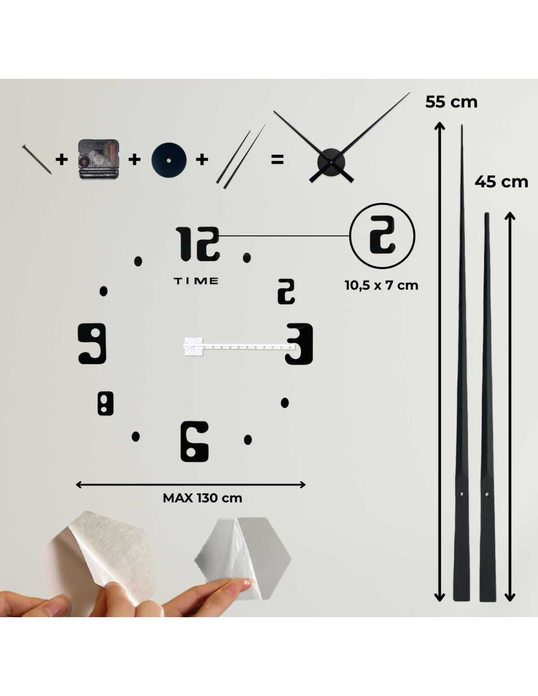 Entdecken Sie eine stilvolle Wanduhr mit einem verstellbaren Durchmesser von bis zu 130 cm, die als markantes Element im Wohnzimmer, Schlafzimmer, Büro oder Eingangsbereich auffällt.
