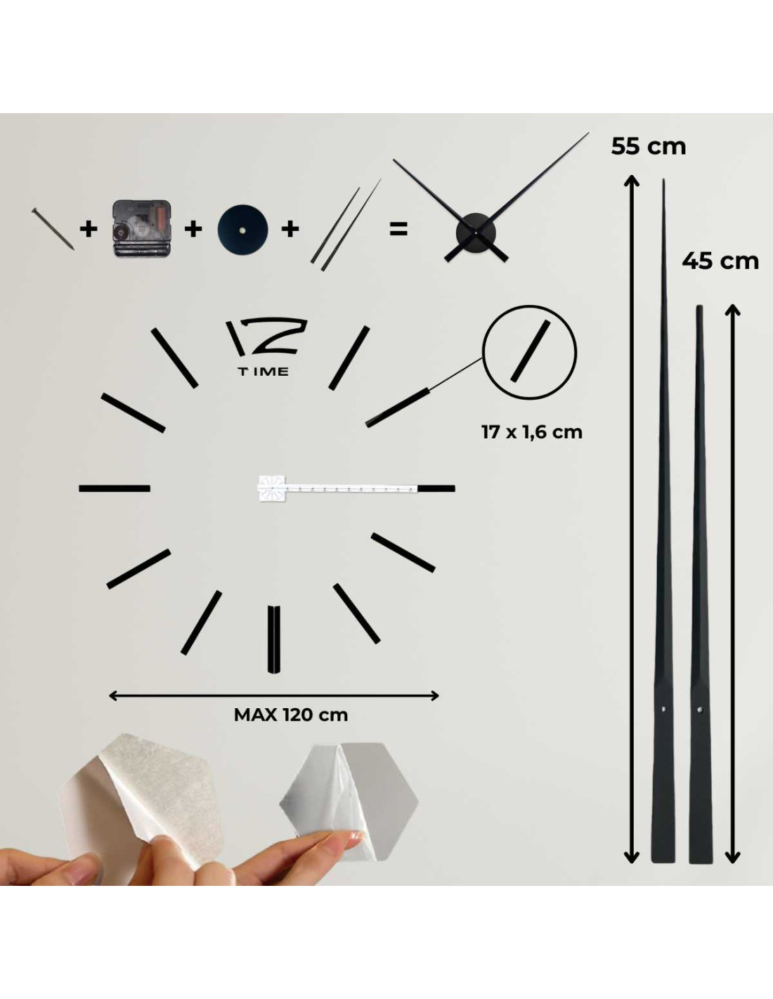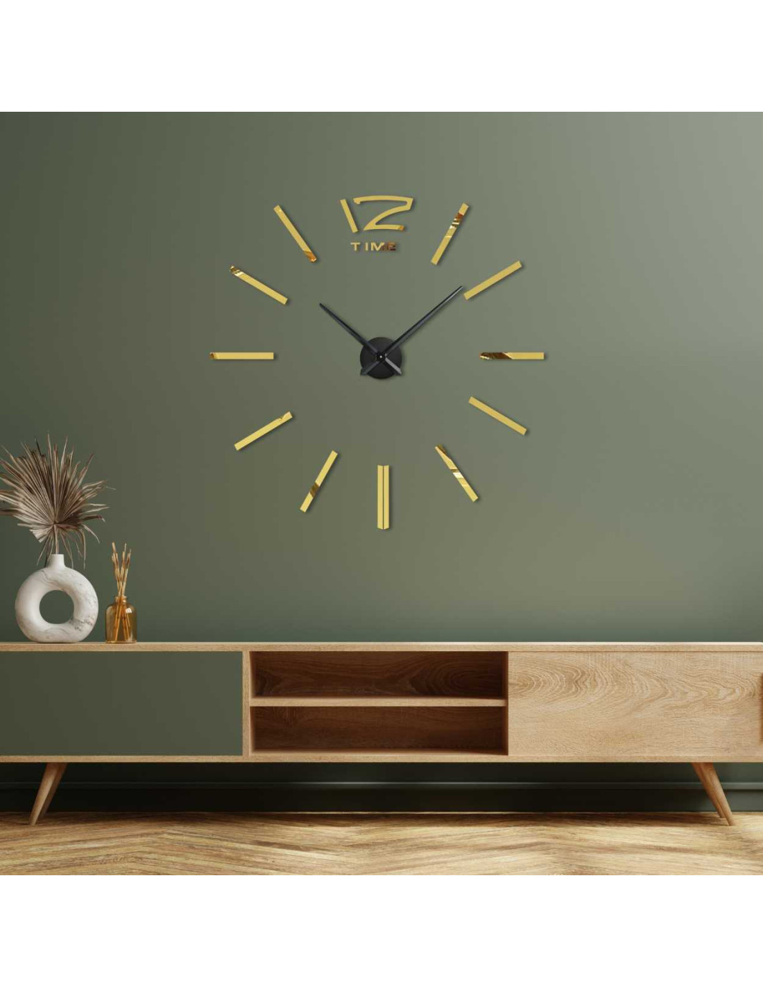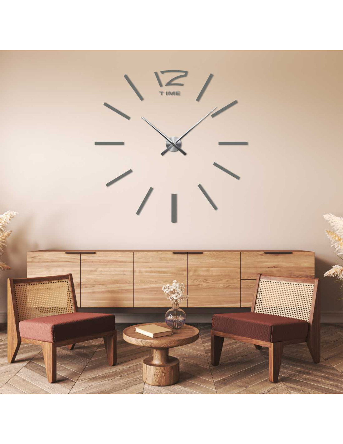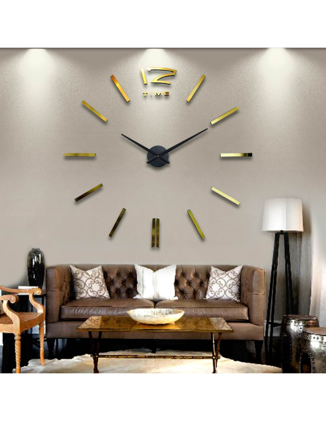 Entdecken Sie eine stilvolle Wanduhr mit einem verstellbaren Durchmesser von bis zu 130 cm, die als markantes Element im Wohnzimmer, Schlafzimmer, Büro oder Eingangsbereich hervorsticht.