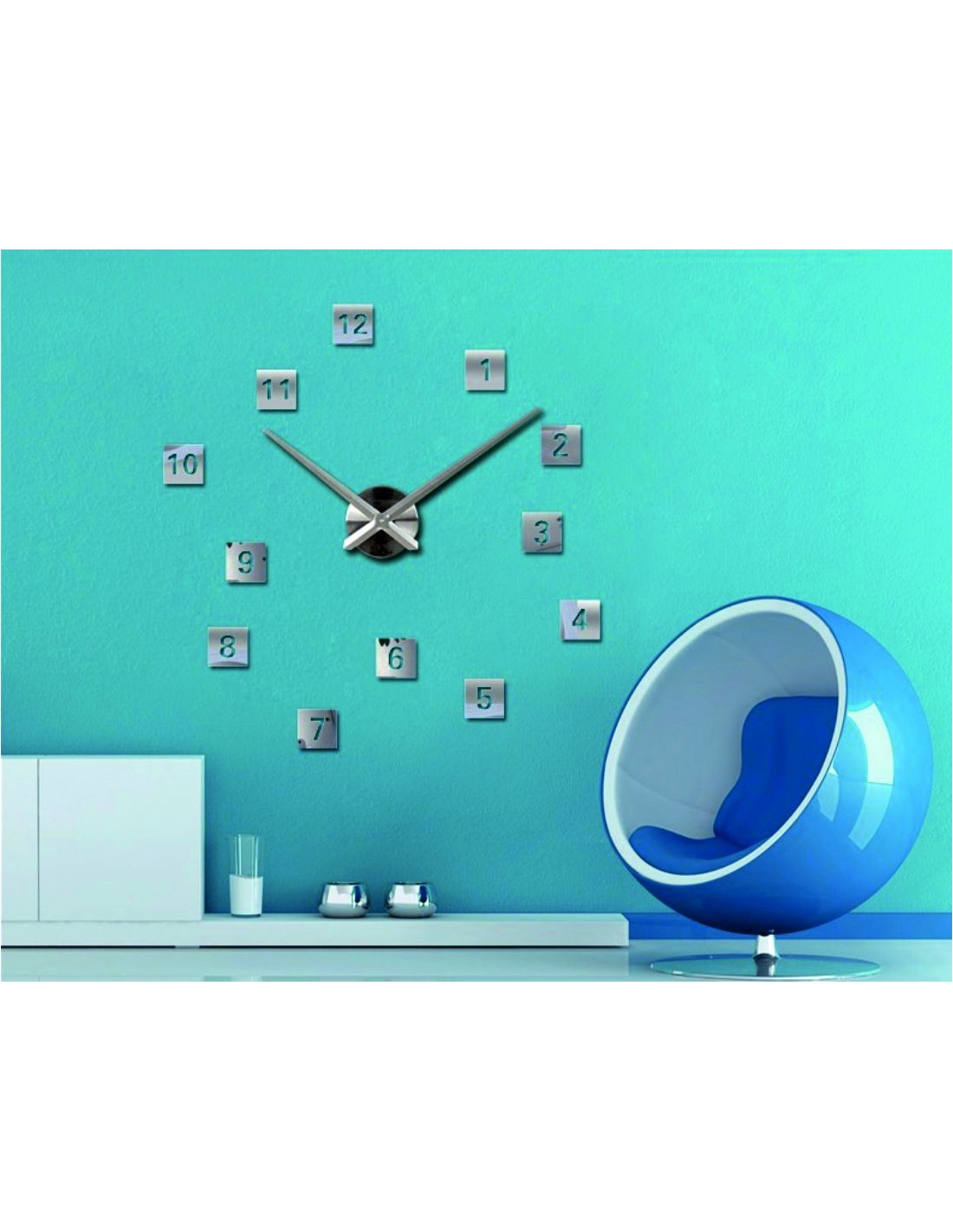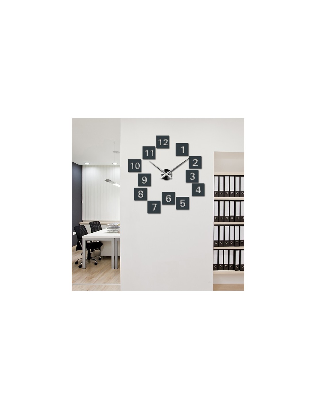 Moderne Klebeuhren im extragroßen Format werden zum Blickfang an jeder Wand und verleihen dem Raum ein harmonisches Aussehen.