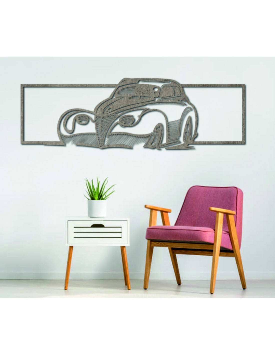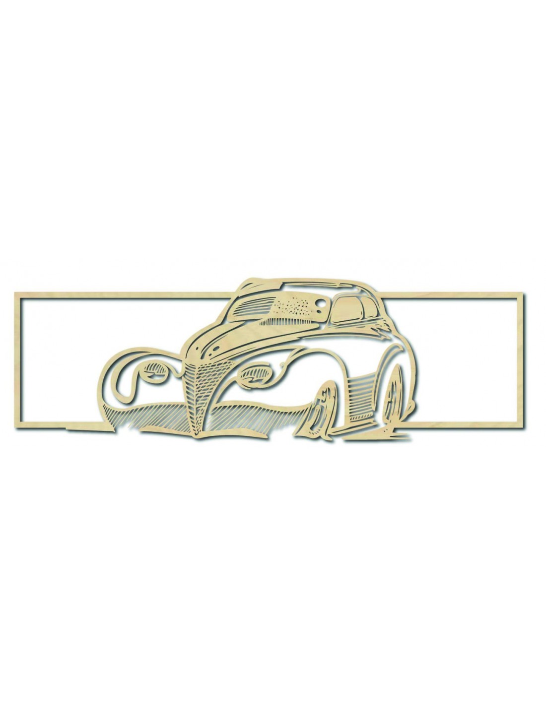 Dieses Holzbild mit Retro-Automotiv ist eine stilvolle und originelle Dekoration für Liebhaber des Vintage-Designs.