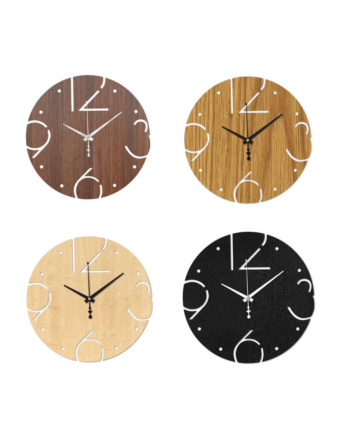 Moderne Wanduhr aus hochwertiger HDF-Platte, erhältlich in drei Größen – 30, 40 und 50 cm.