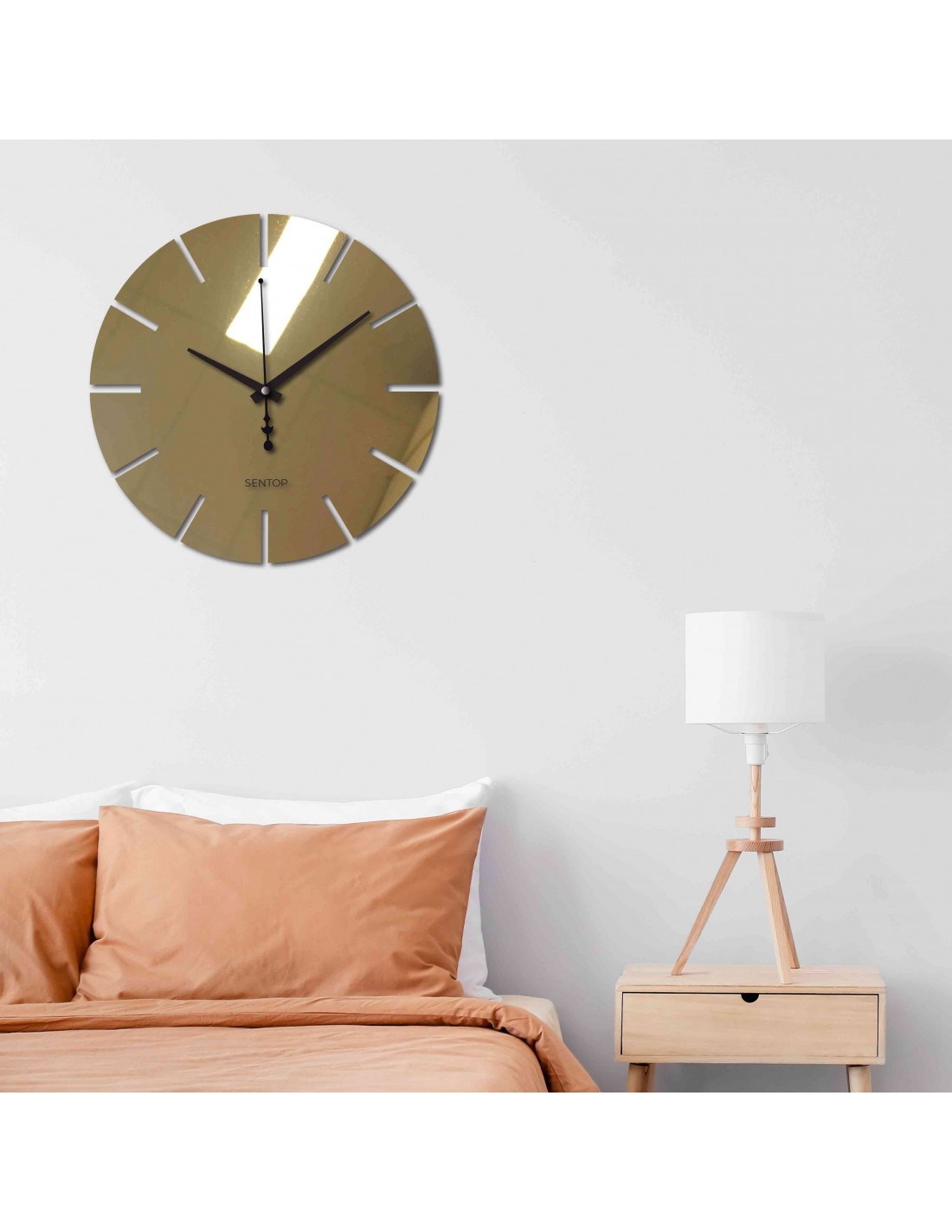 Uhr in Gold- und Silberspiegel - ersetzt den klassischen Spiegel vollständig. Uhren in anderen Farben sind hochglänzend mit einer Reflexion entsprechend dem Interieur.