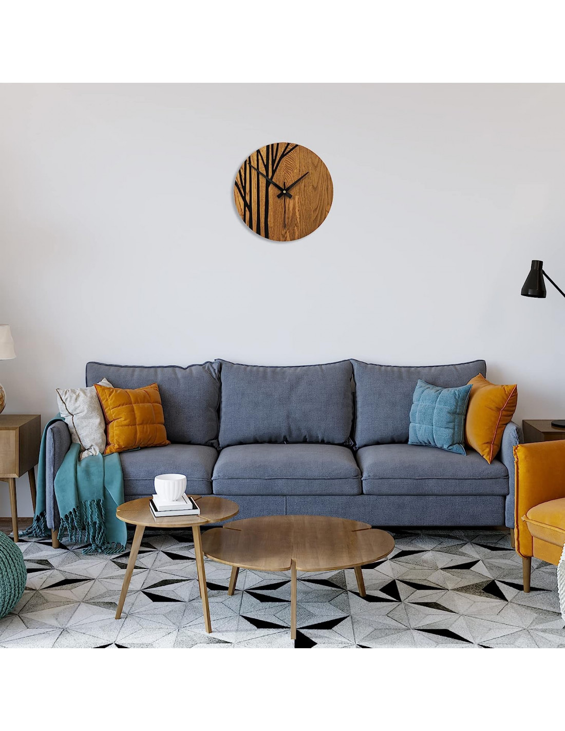 Luxuriöse Wanduhr für das Wohnzimmer aus Naturholz.