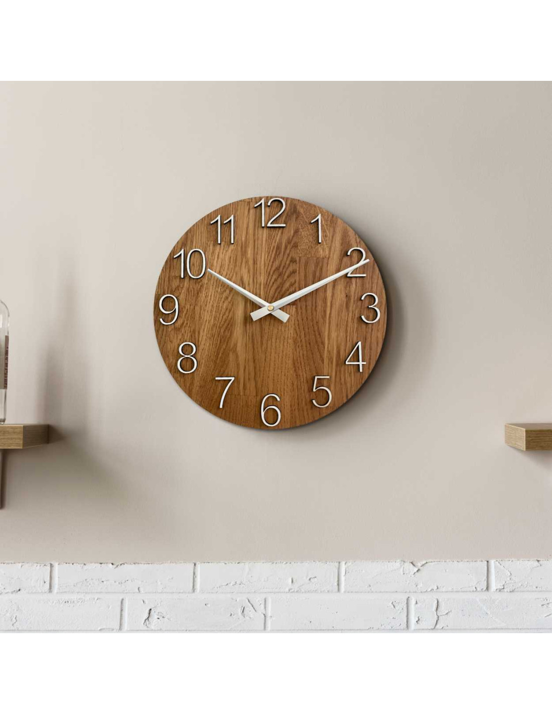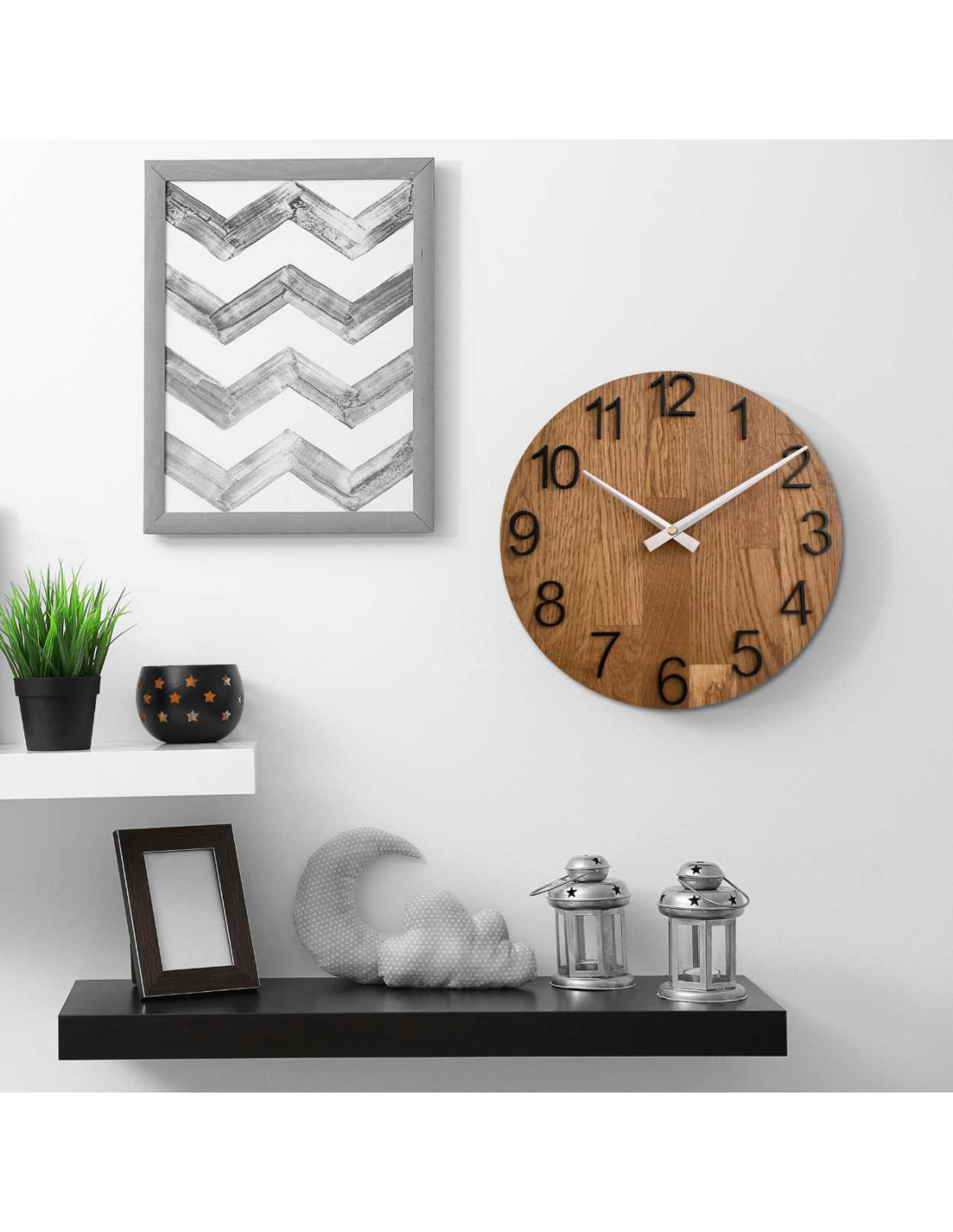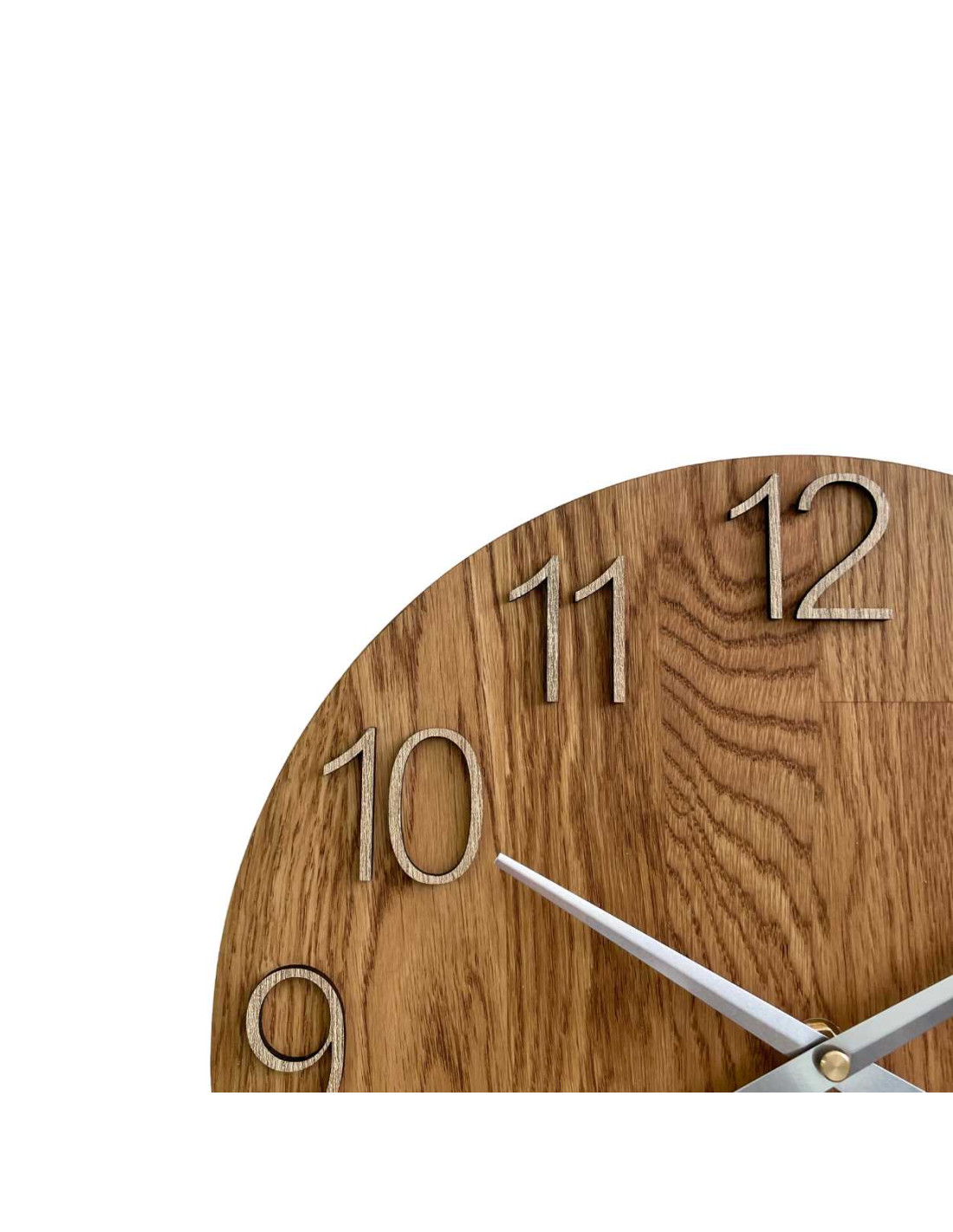• Natürliches und elegantes Design: Die Kombination aus Eichenholz und Metallzeigern sorgt für einen modernen und dennoch zeitlosen Look.
