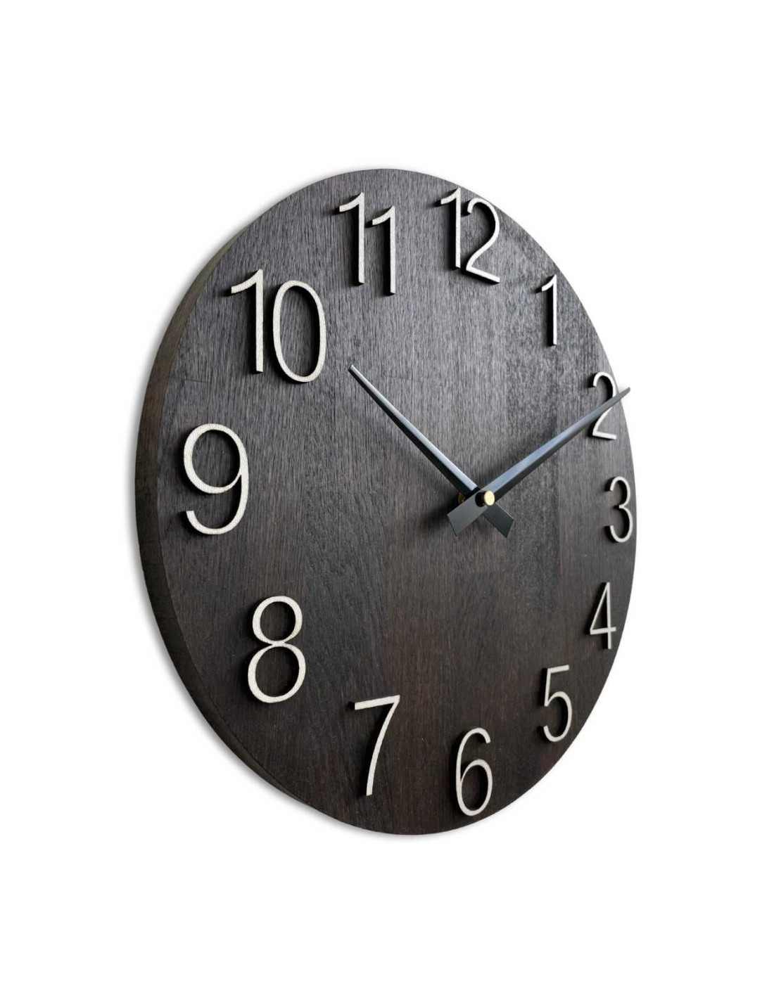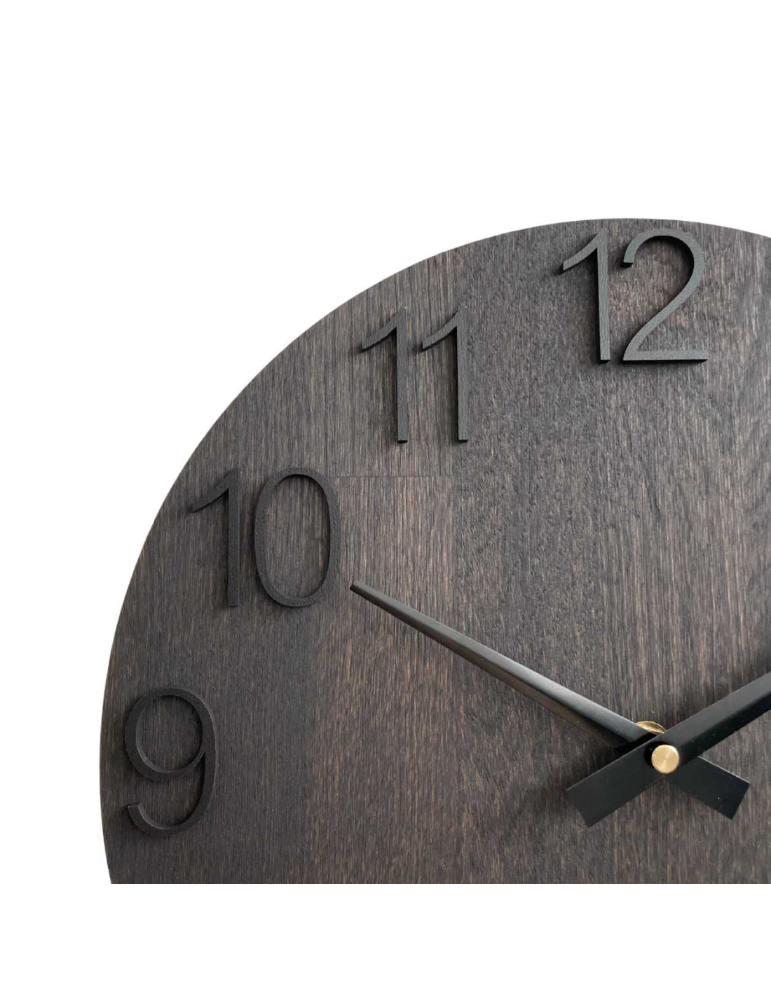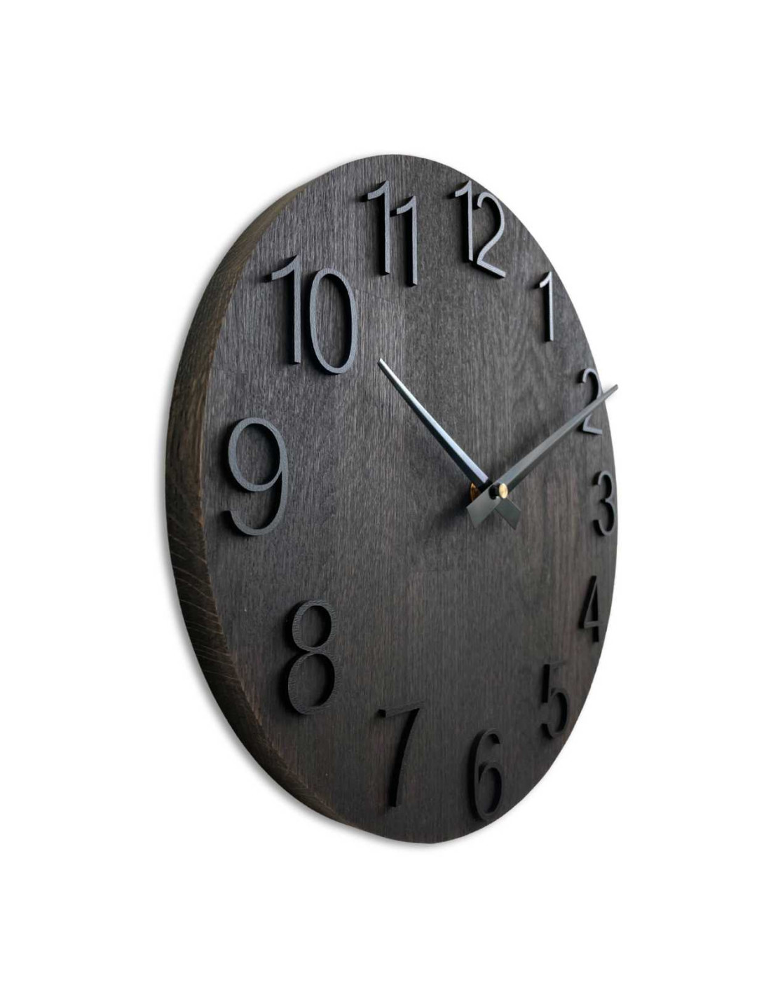 Massive Holzuhr mit minimalistischem Design und markantem Zifferblatt.