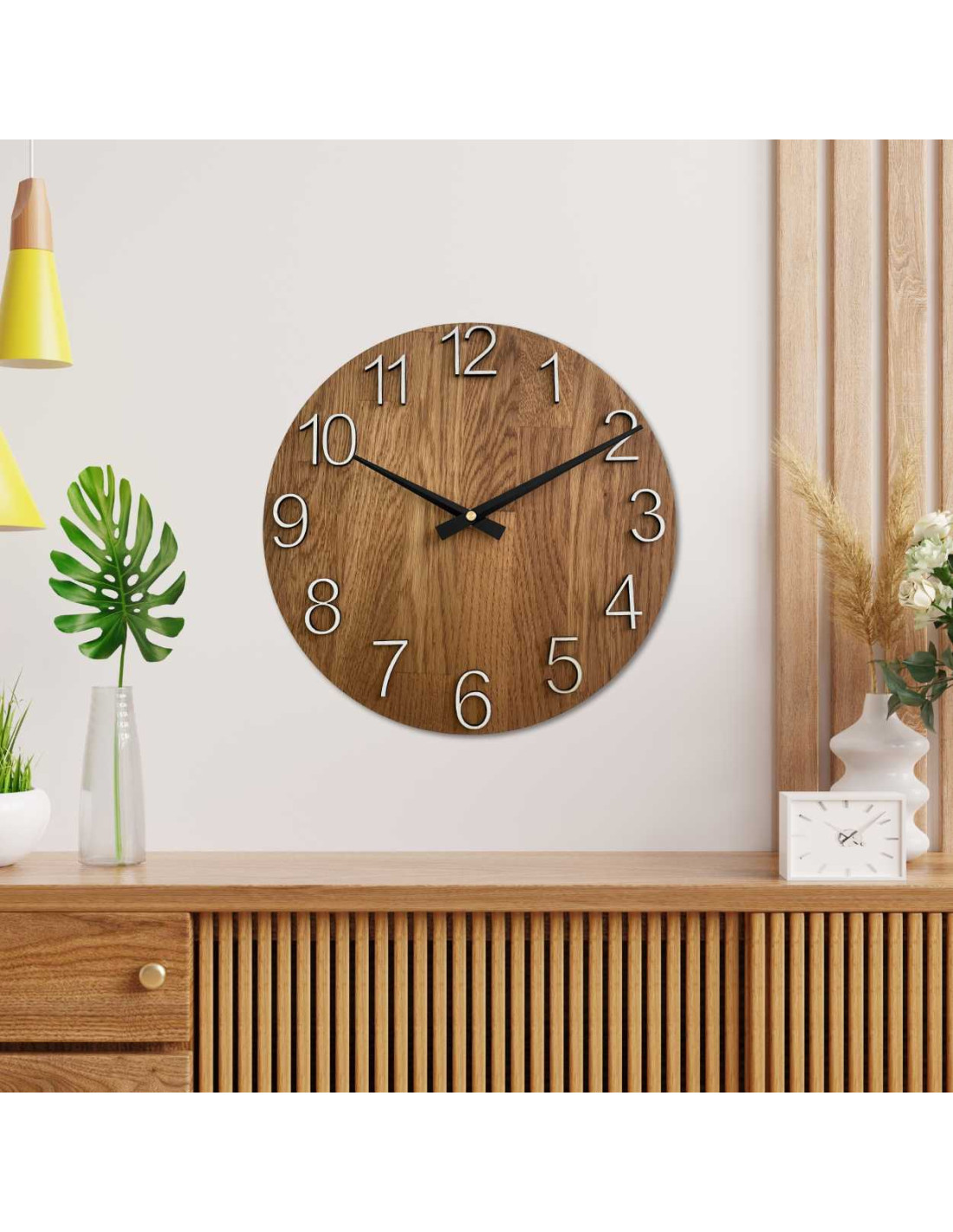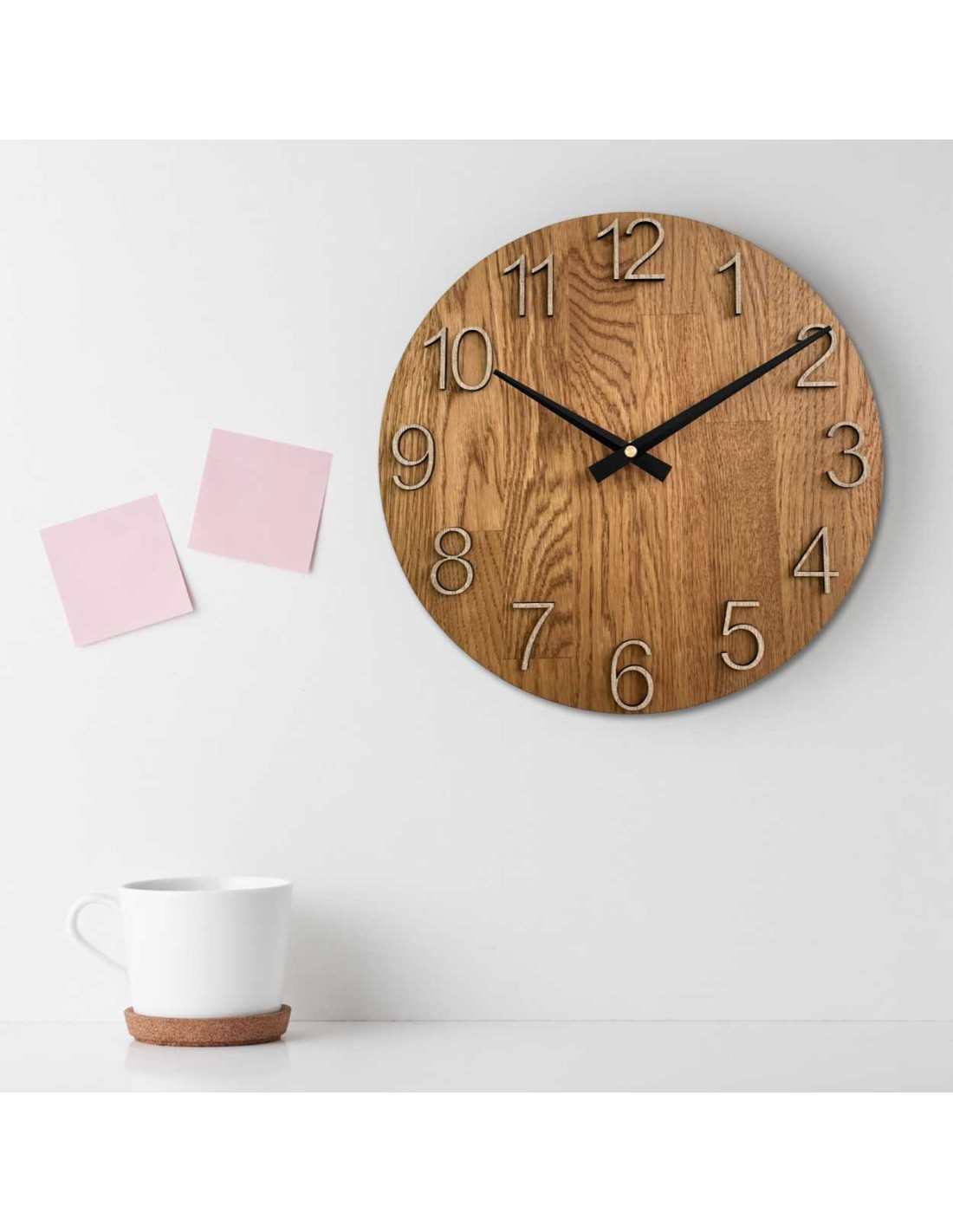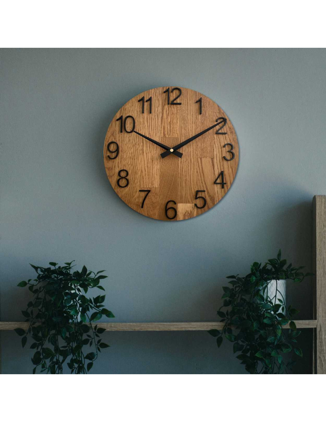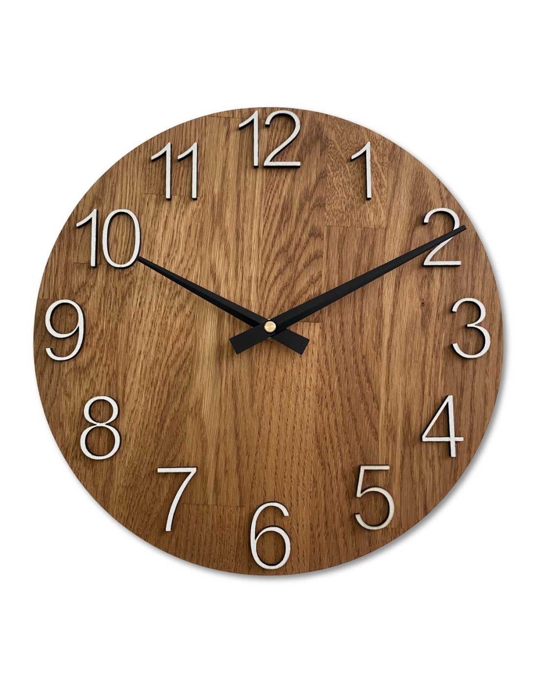 - Natürliches und elegantes Design – Die Kombination aus Eichenholz und Metallzeigern sorgt für einen modernen und dennoch zeitlosen Look.