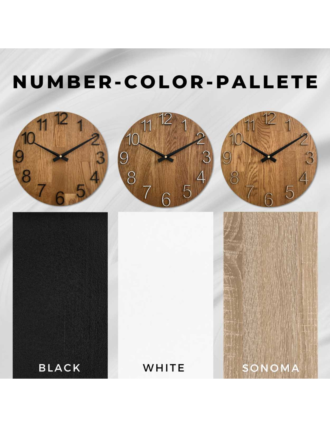 ➡️ Struktur: Jede Uhr ist einzigartig, da jedes Stück Holz eine andere Textur, Maserung und Holzfarbe aufweist.
