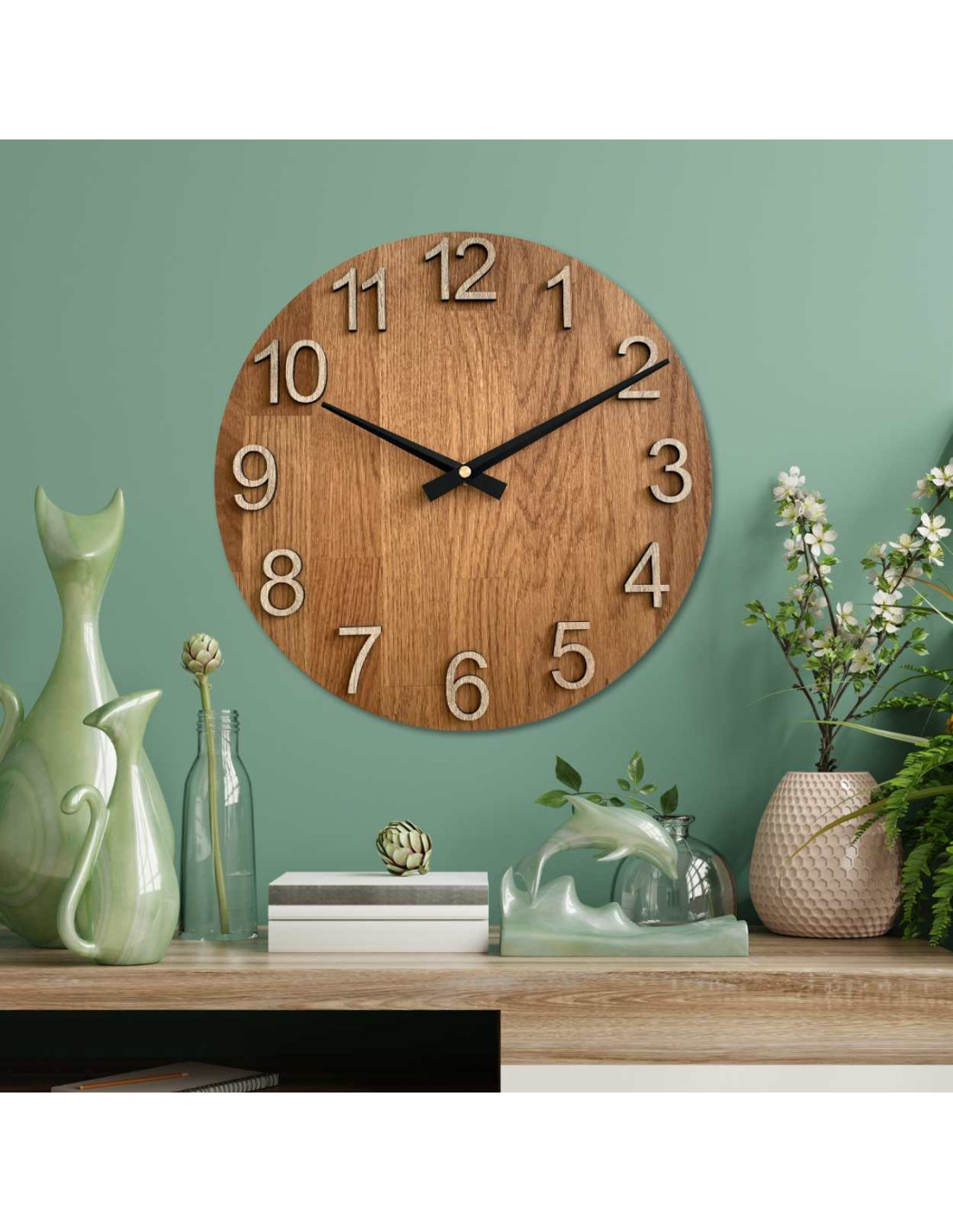 Wanduhr aus Eiche mit großen Zahlen - DOMODRA