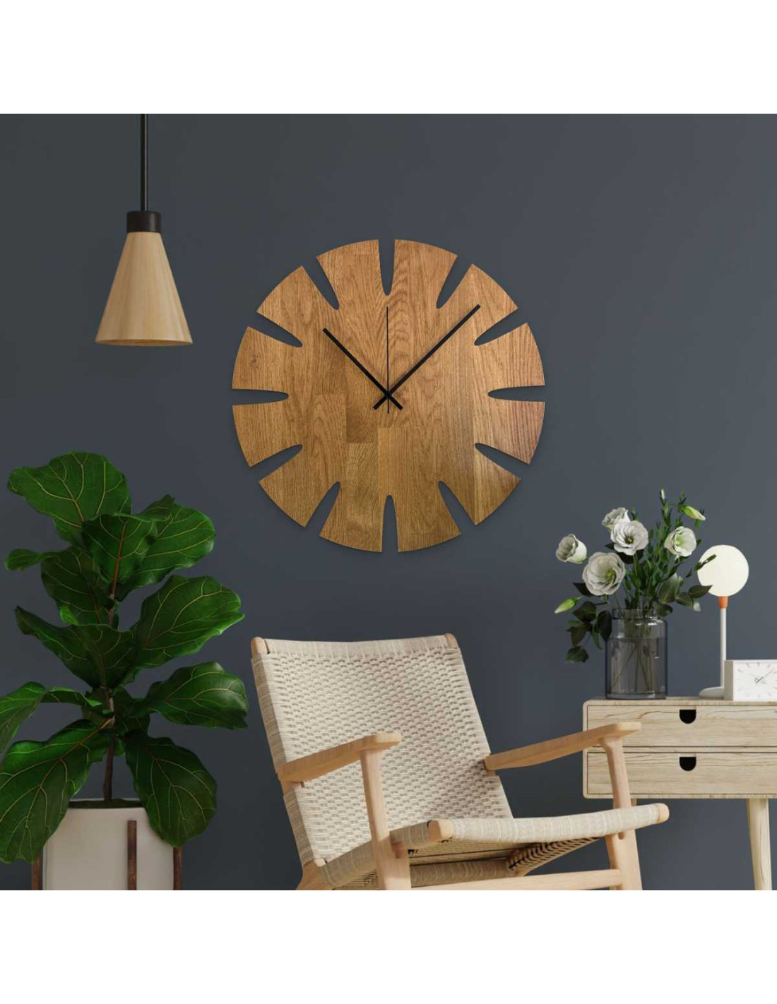 - Edles Design: Die Kombination aus Eichenholz und Metallzeigern sorgt für einen modernen und zugleich zeitlosen Look.