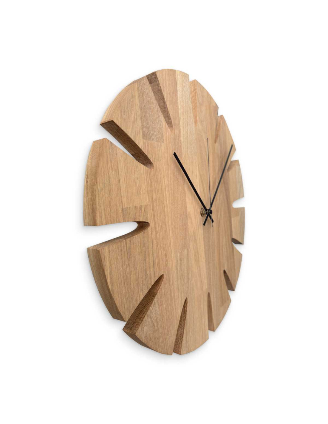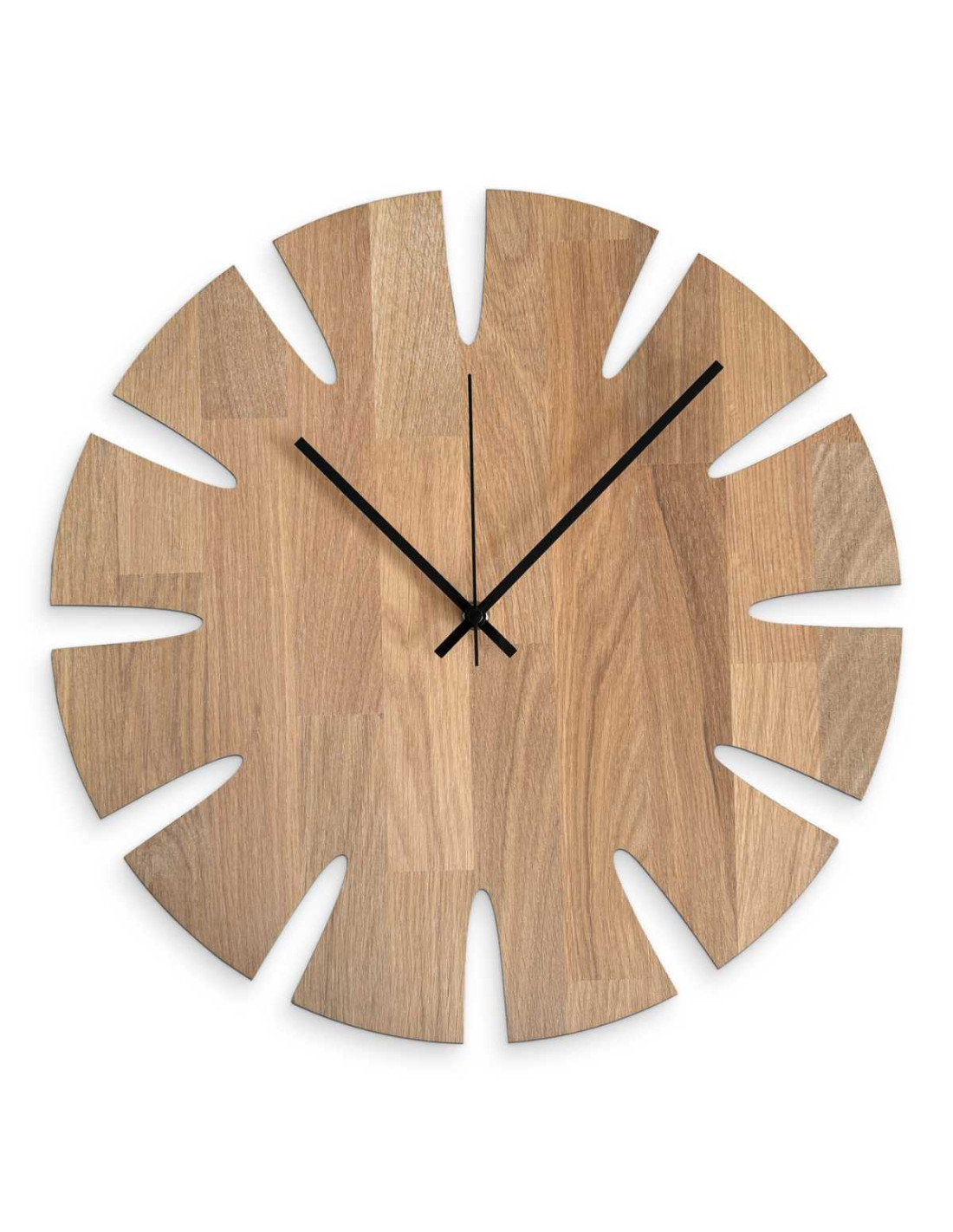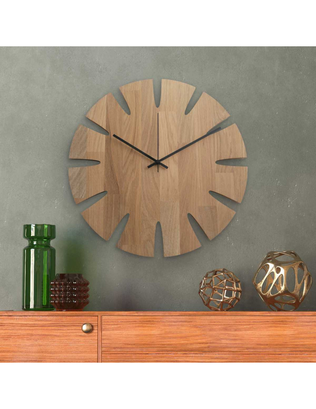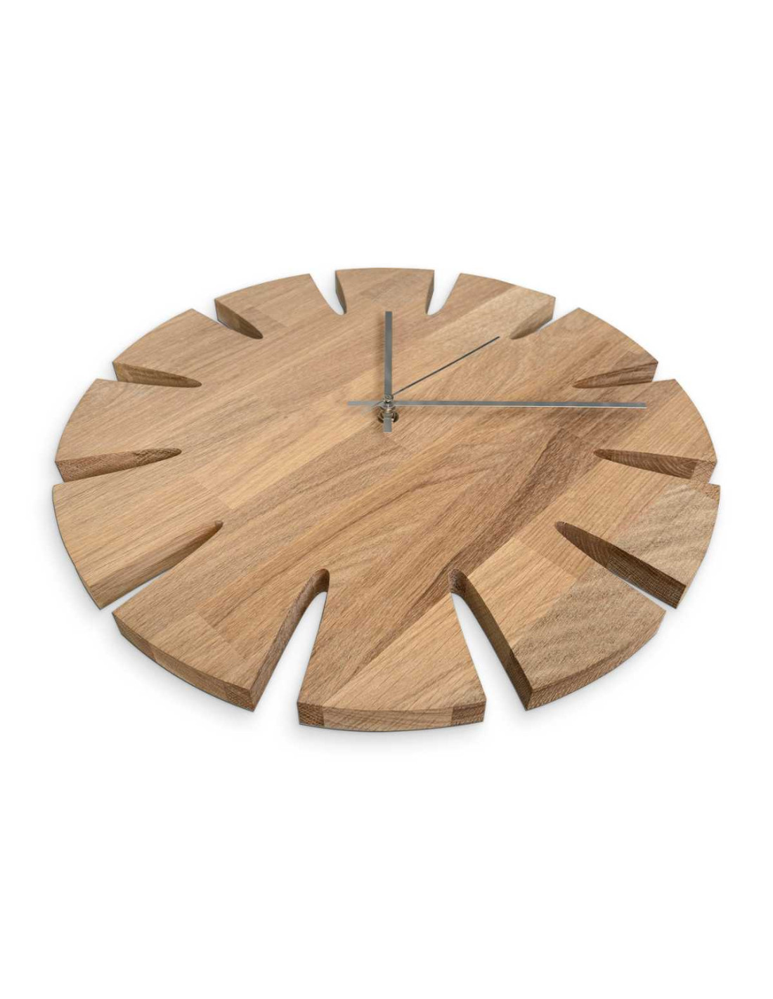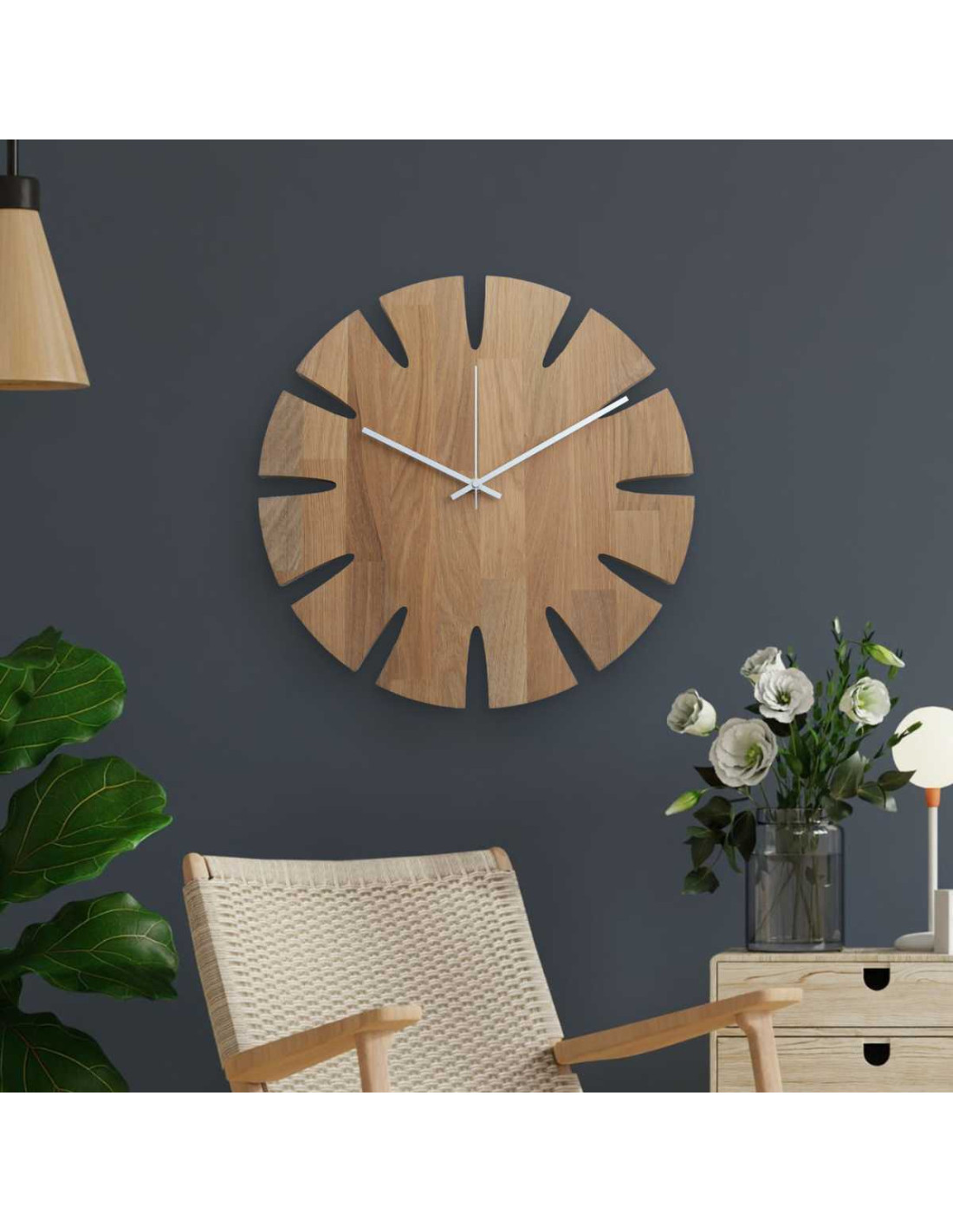 Luxuriöse Wanduhr aus Eichenholz verbindet modernes Design mit natürlichem Charakter.