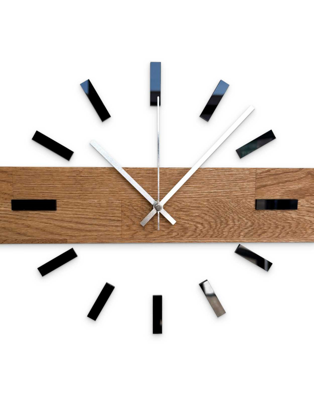 Jede Uhr besteht aus massiven Eichenplatten, die zunächst mithilfe der CNC-Technologie präzise in die gewünschte Form und Größe geschnitten werden .