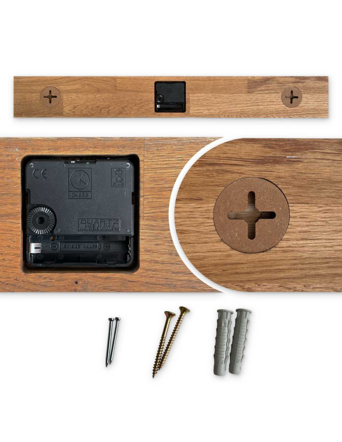 - Natürliches und elegantes Design – Die Kombination aus Eichenholz und Metallzeigern sorgt für einen modernen und dennoch zeitlosen Look.
